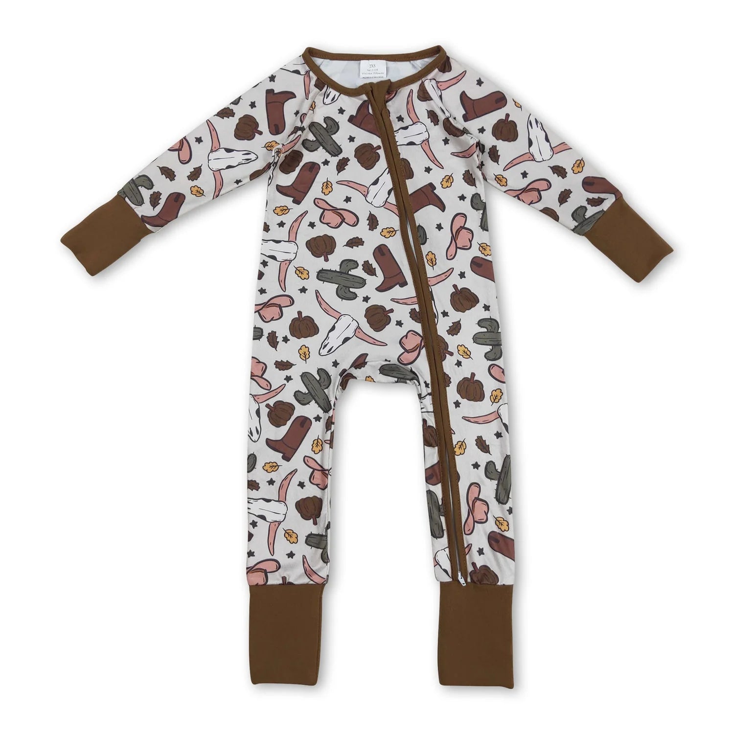 9.30 RTS Sibling Baby Boys Western Bull Skull Cactus Rompers Pajamas Clothes Sets
