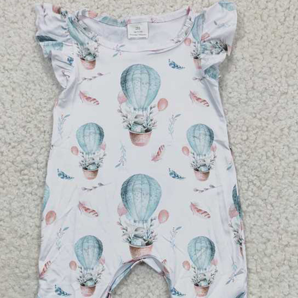 A5-10 RTS NO MOQ Flutter sleeves rabbit balloon baby girls easter romper