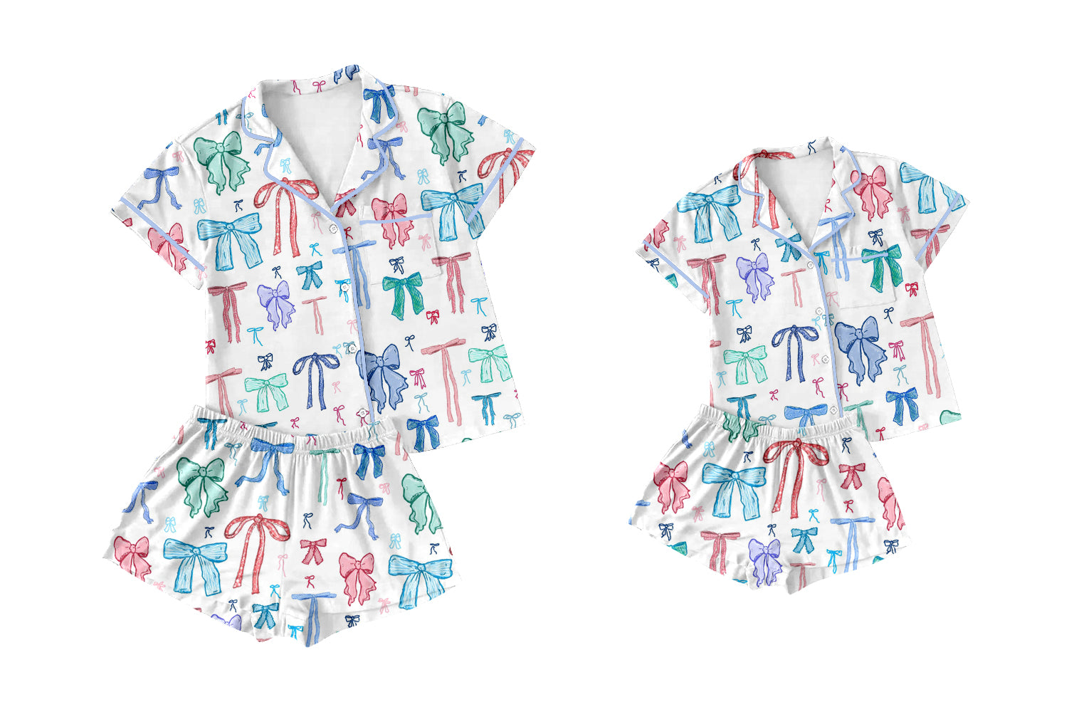Colorful Bow Button Short-Sleeve Pajamas for Adults And Girls - Comfortable Sleepwear with Button Detailing