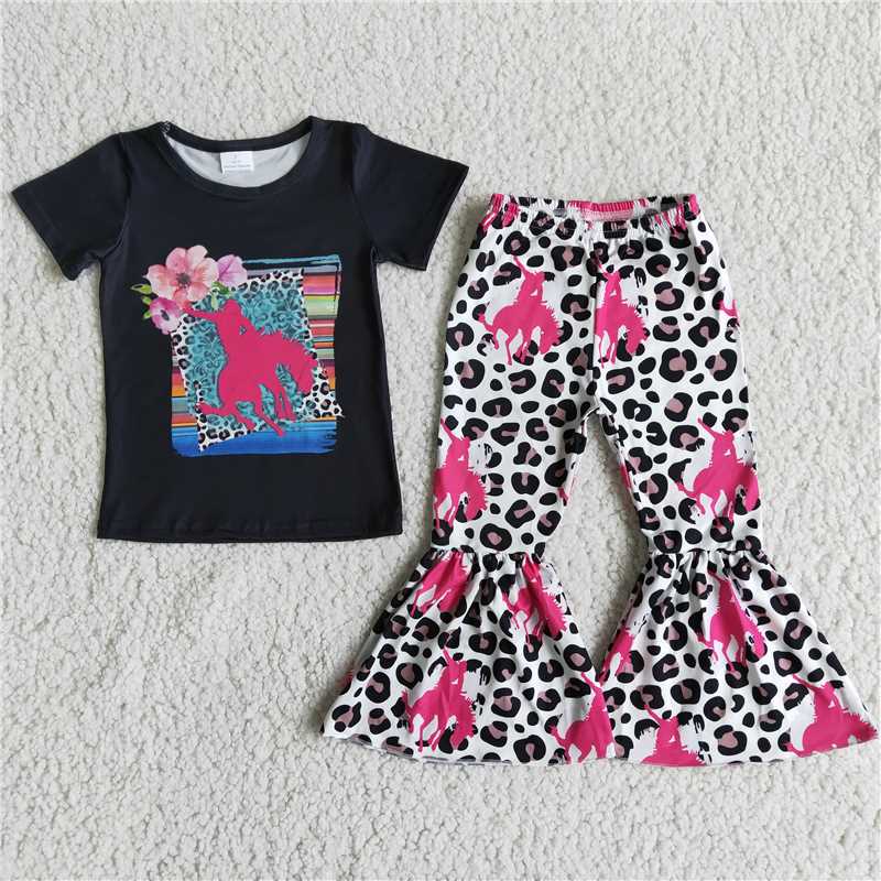 B1-27 Baby girls western black shirt top bell pants clothing sets