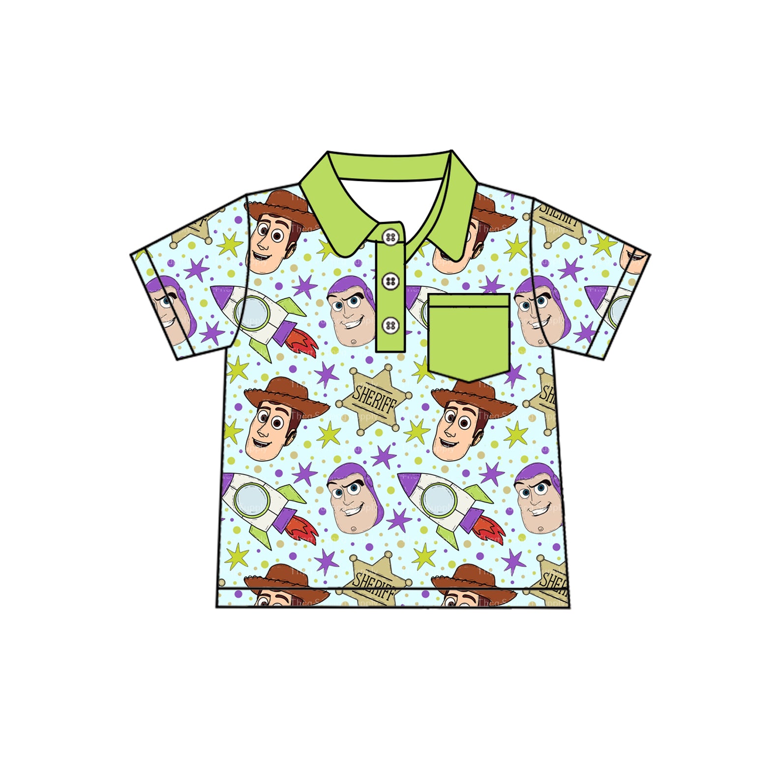 Cute Green Short-Sleeved Pocket Top and Shorts Combo for Kids Boys with Toy Surprises