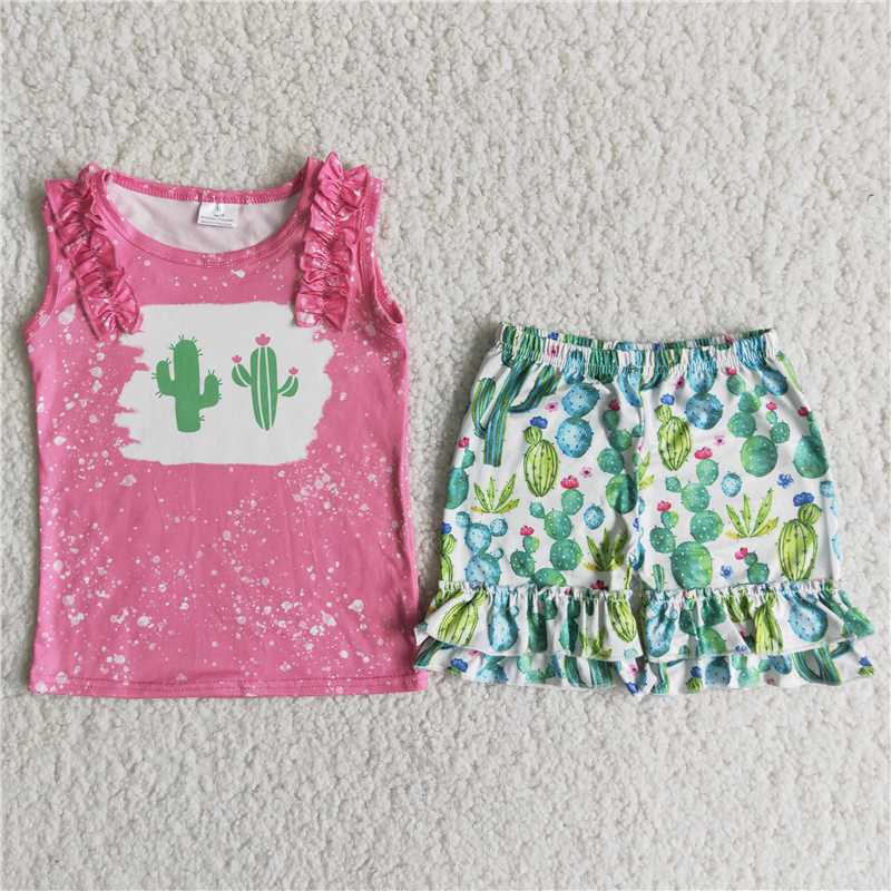 Baby Girls Cactus Pink Heart Shirt Shorts Clothes Sets