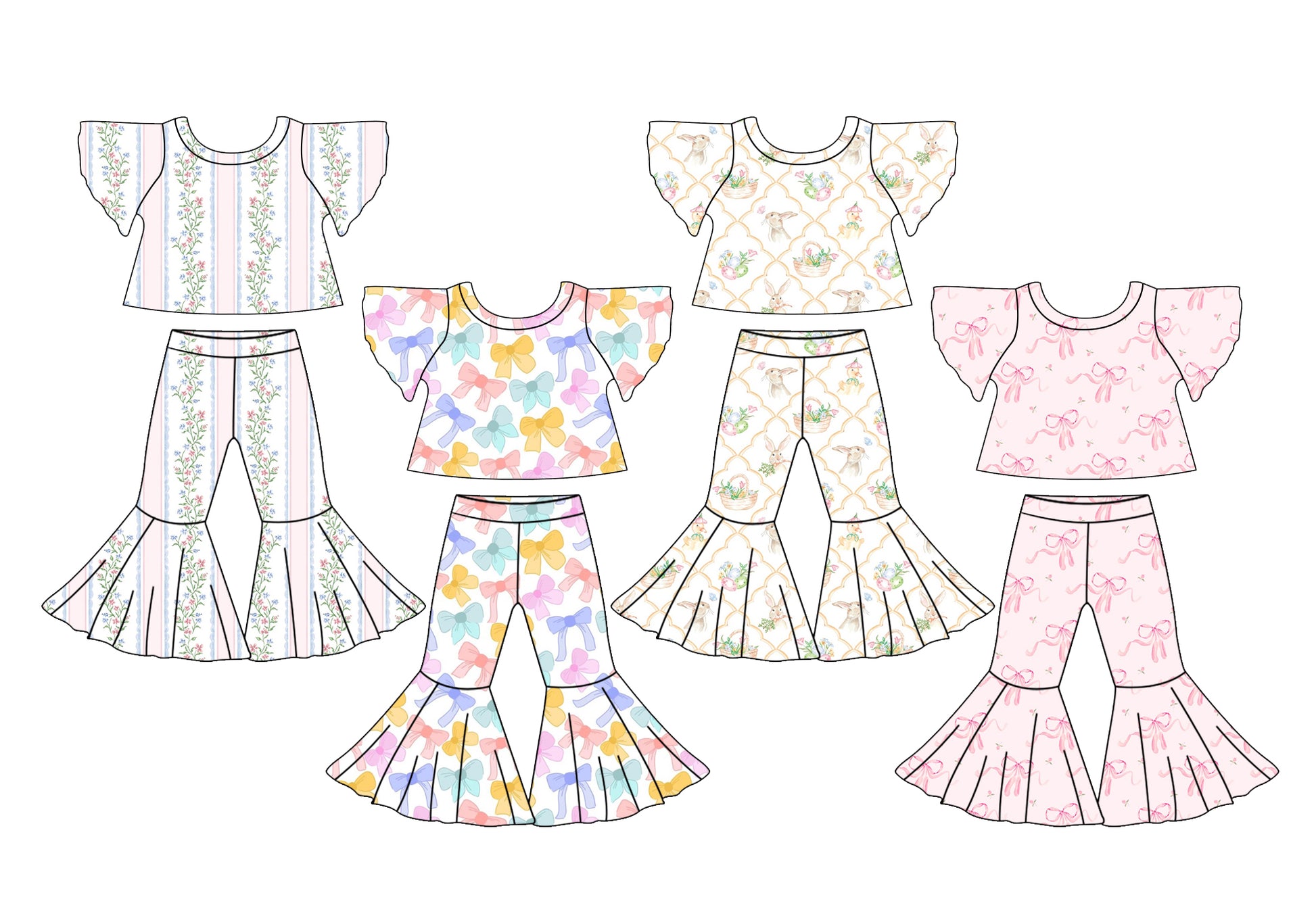 Baby Girls Floating Sleeve Shirt Flared Pants Clothes Set Mixed Sizes Pre-order