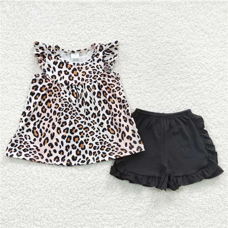 Baby Girls Leopard Tunic Top Black Shorts Sets