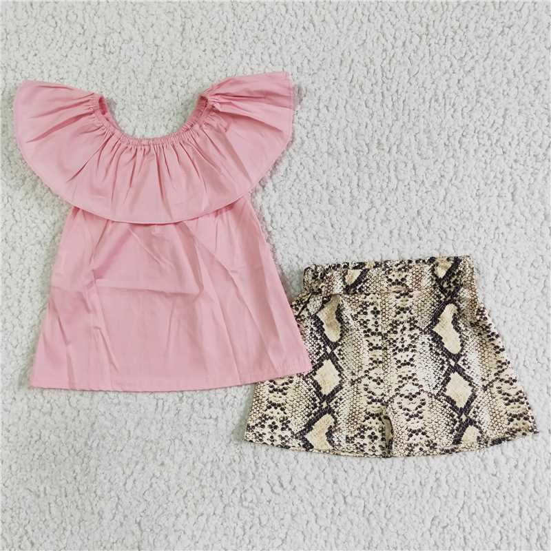 Baby Girls Pink top Snake skin shorts summer clothes sets