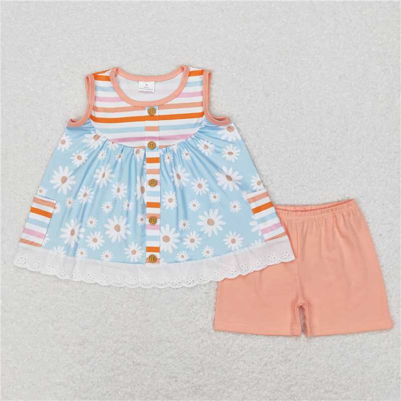 Baby Girls Summer Daisy Sleeveless Tunic Tops Shorts Outfits Clothes Sets