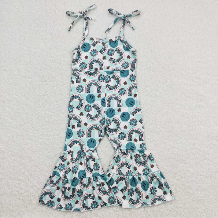 Baby kids green smiley face U-shaped plaid overalls-short-sleeved zipper romper