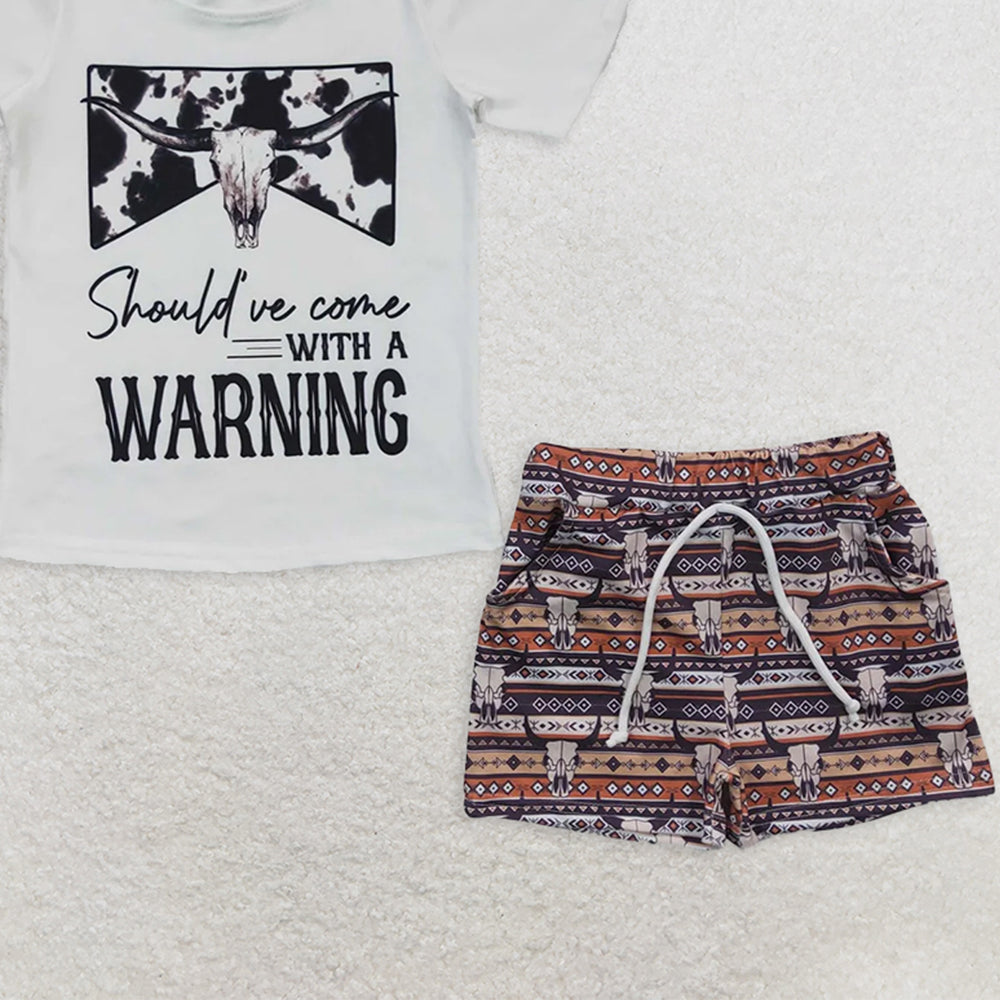 BSSO0210 RTS NO MOQ Baby Boys Summer Boys Outfits Baby Boys Western Cow Skull Short Sleeve Tee Shirts Shorts Sets