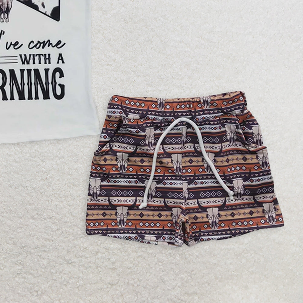 BSSO0210 RTS NO MOQ Baby Boys Summer Boys Outfits Baby Boys Western Cow Skull Short Sleeve Tee Shirts Shorts Sets