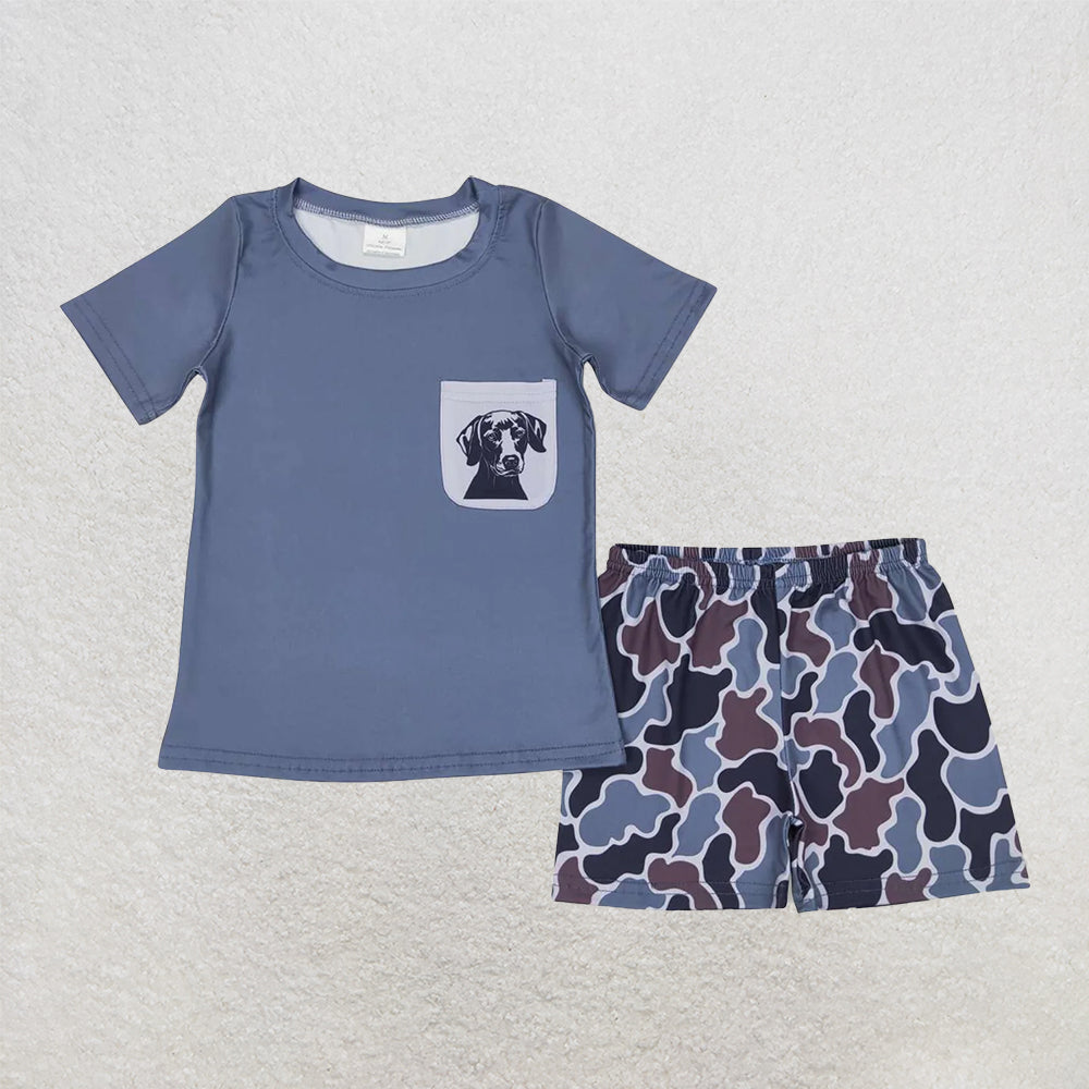 USA Shop (in stock) BSSO0304 Baby Boys Summer Boys Outfits Baby Boys Hot Blue Short Sleeves Dog Pocket Top Camo Short Western Set