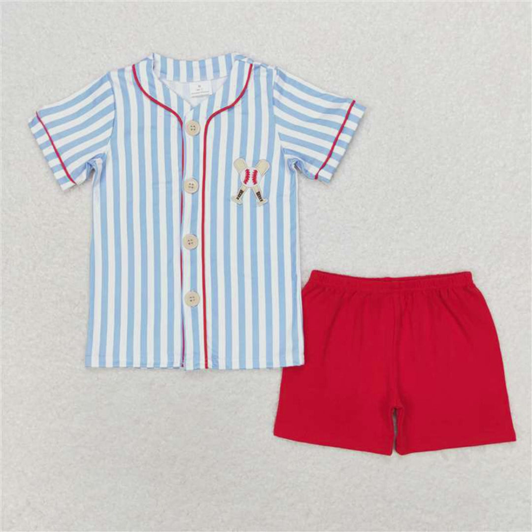 BSSO0800 RTS NO MOQ Short sleeves stripe baseball kids boys clothing set
