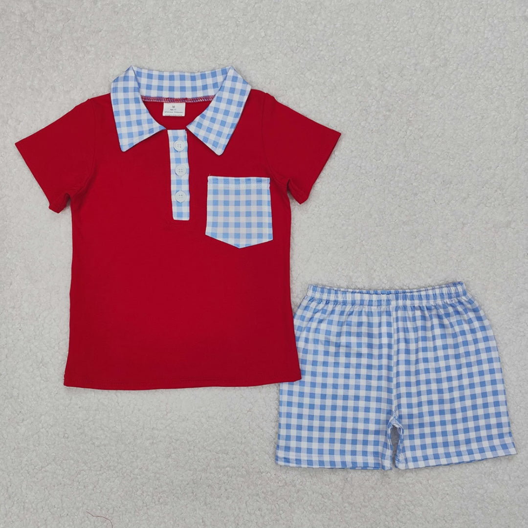 BSSO1152 New Rts No Moq 8-9 Days By Air Arrived it Red short sleeves polo shirt plaid shorts boys clothes