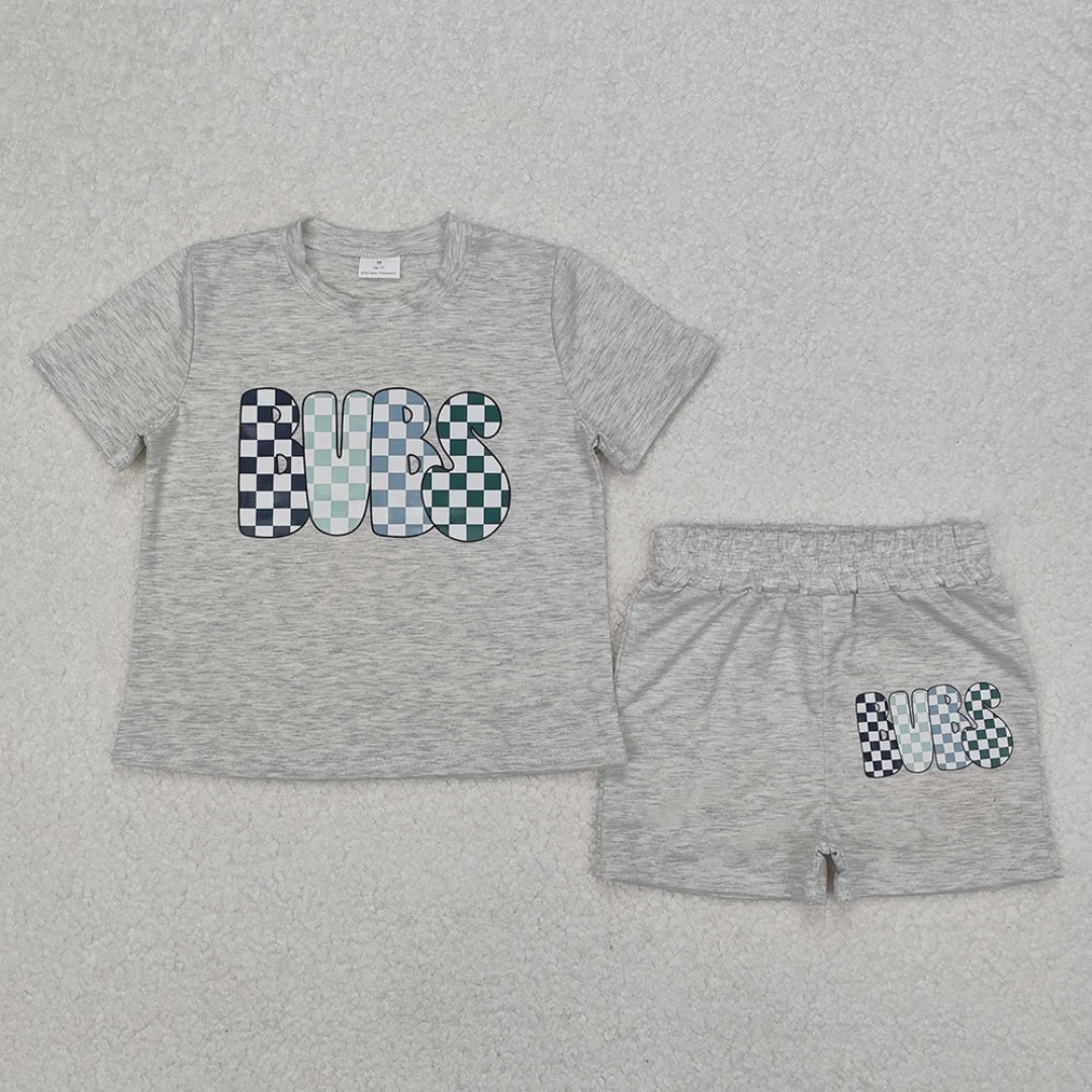 USA Shop (in stock) BSSO1304 Kids Boys Grey Plaid Short Sleeve Clothing Bubs Patterned Outfit for Children