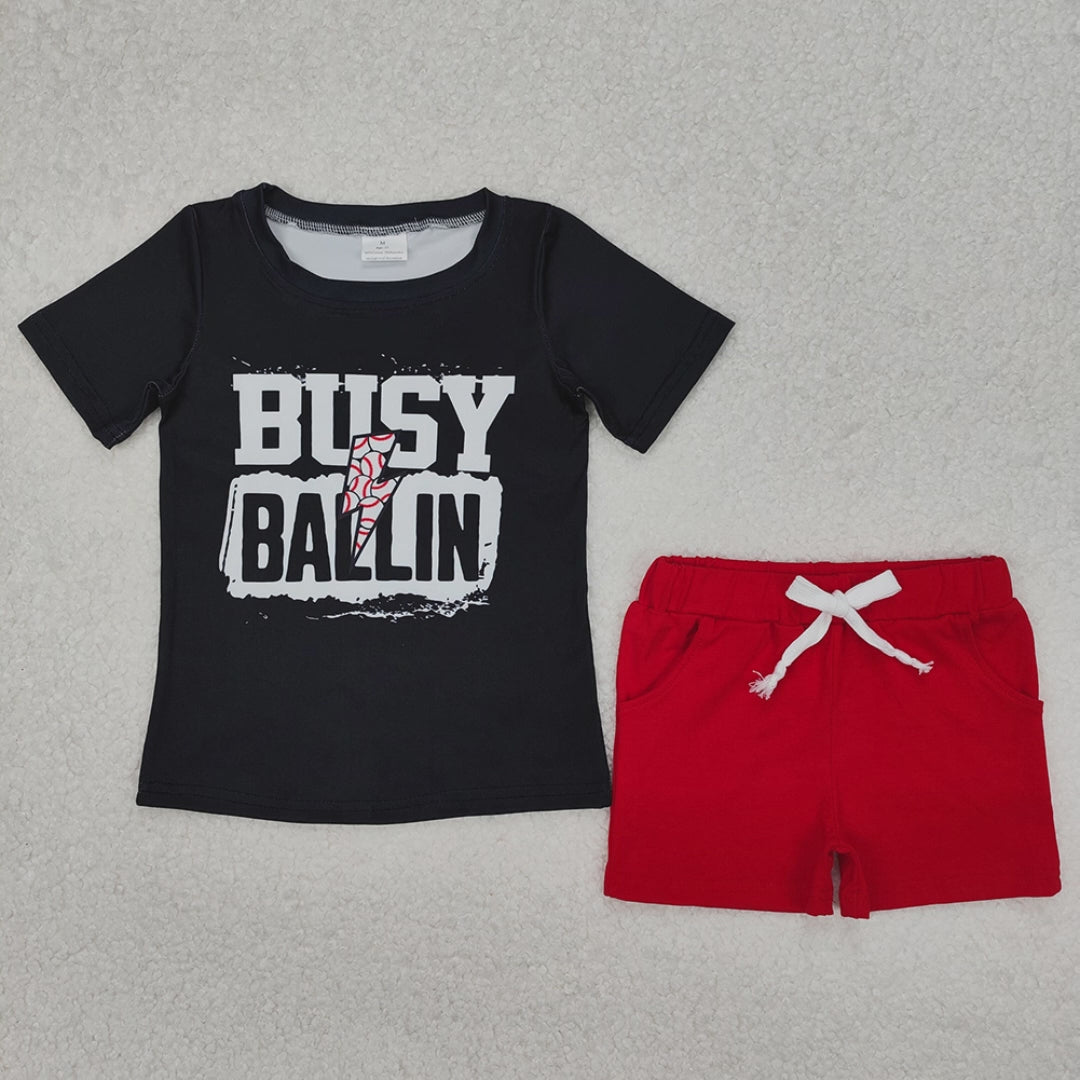 BSSO1318 New Rts No Moq 8-9 Days By Air Arrived it Black busy ballin baseball top red shorts boys clothes