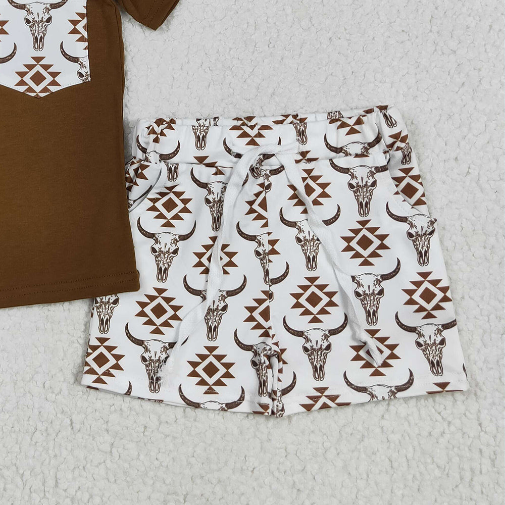 8.25 BSSO1319 RTS NO MOQ Baby Boys Summer Boys Outfits baby boy clothes cow head short sleeve shorts set