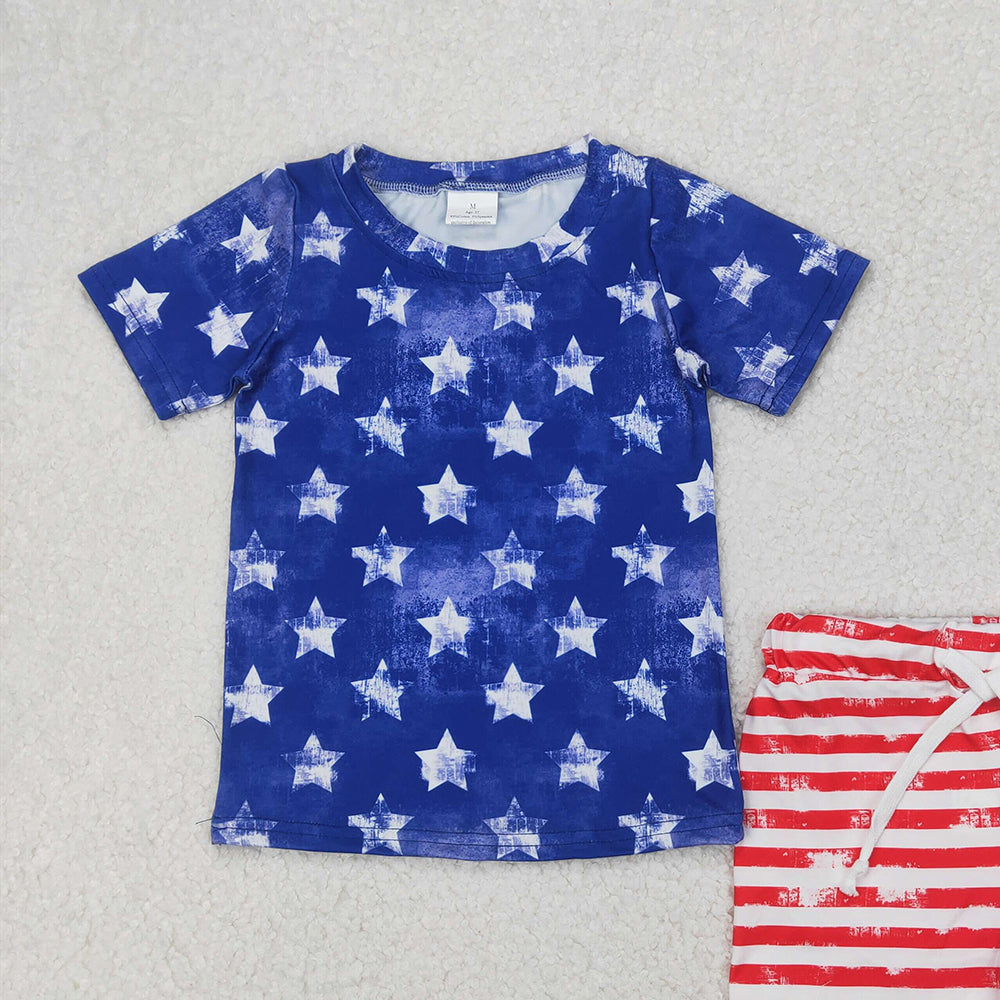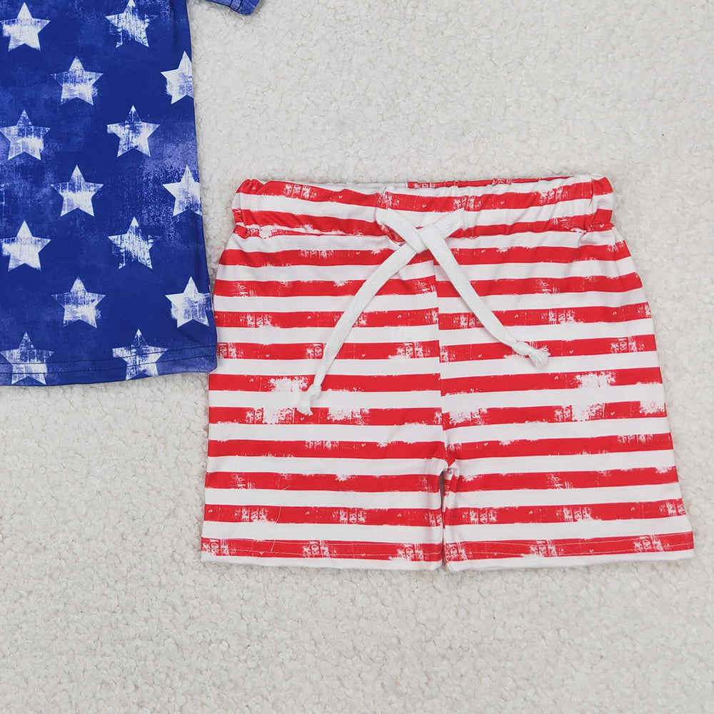 6.16 BSSO1405 RTS NO MOQ Baby Boys Summer Boys Outfits Blue stars top stripe shorts boys 4th of july outfits
