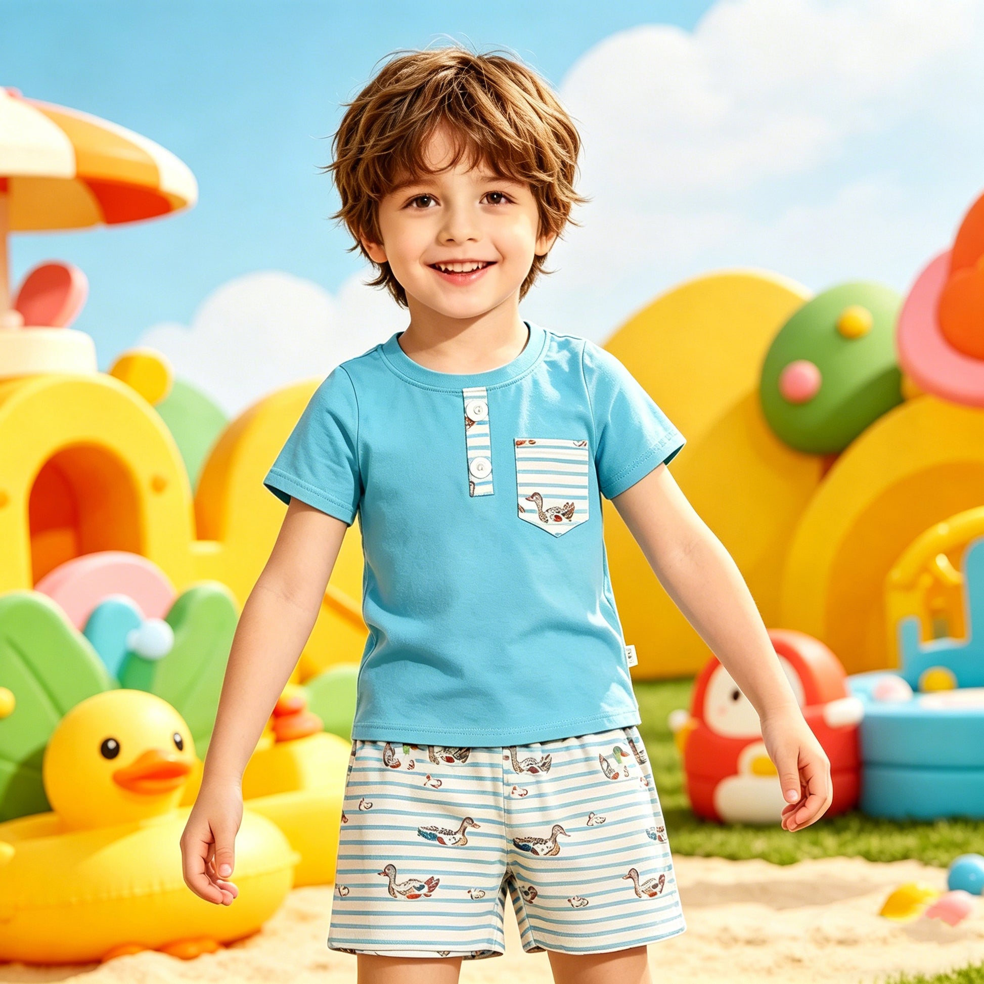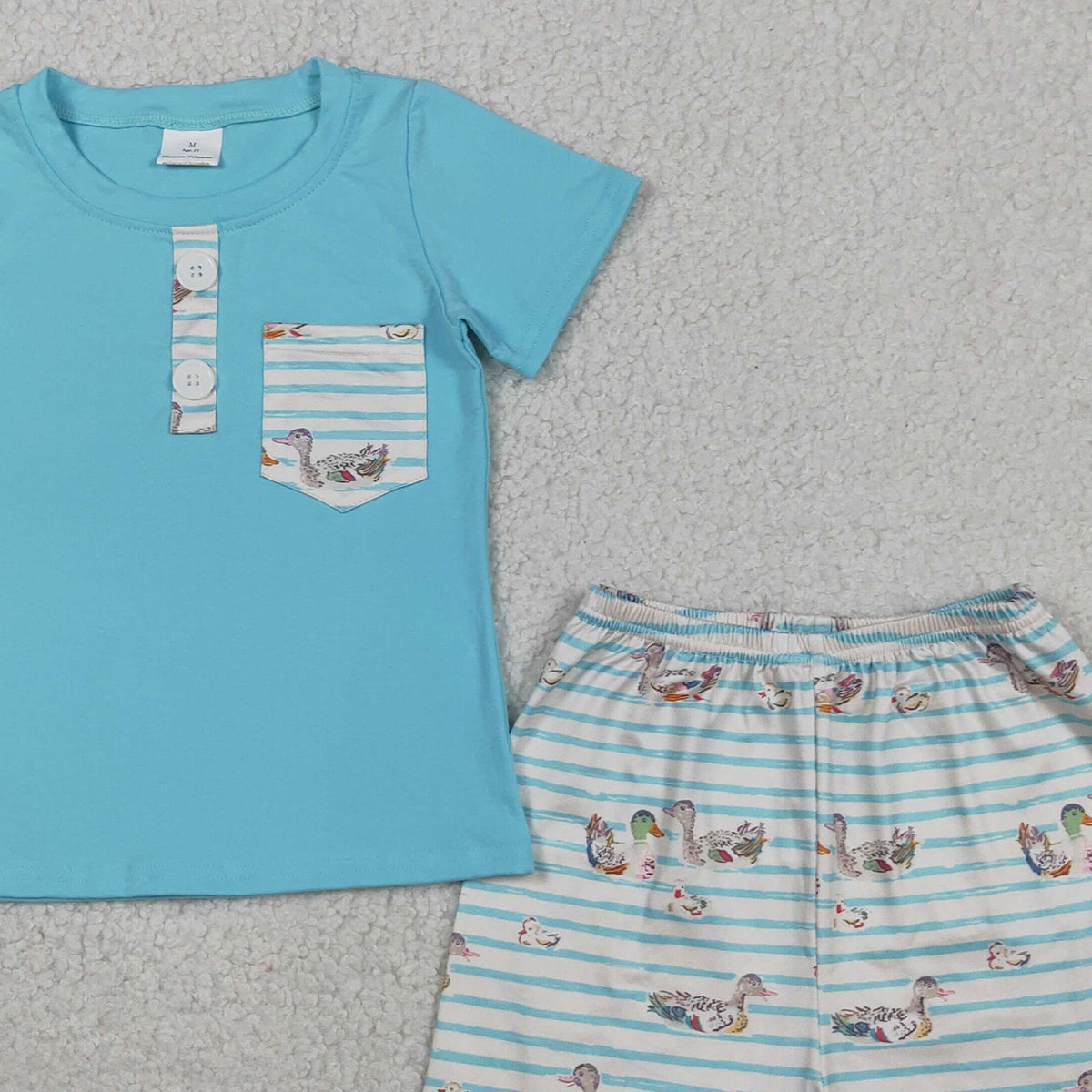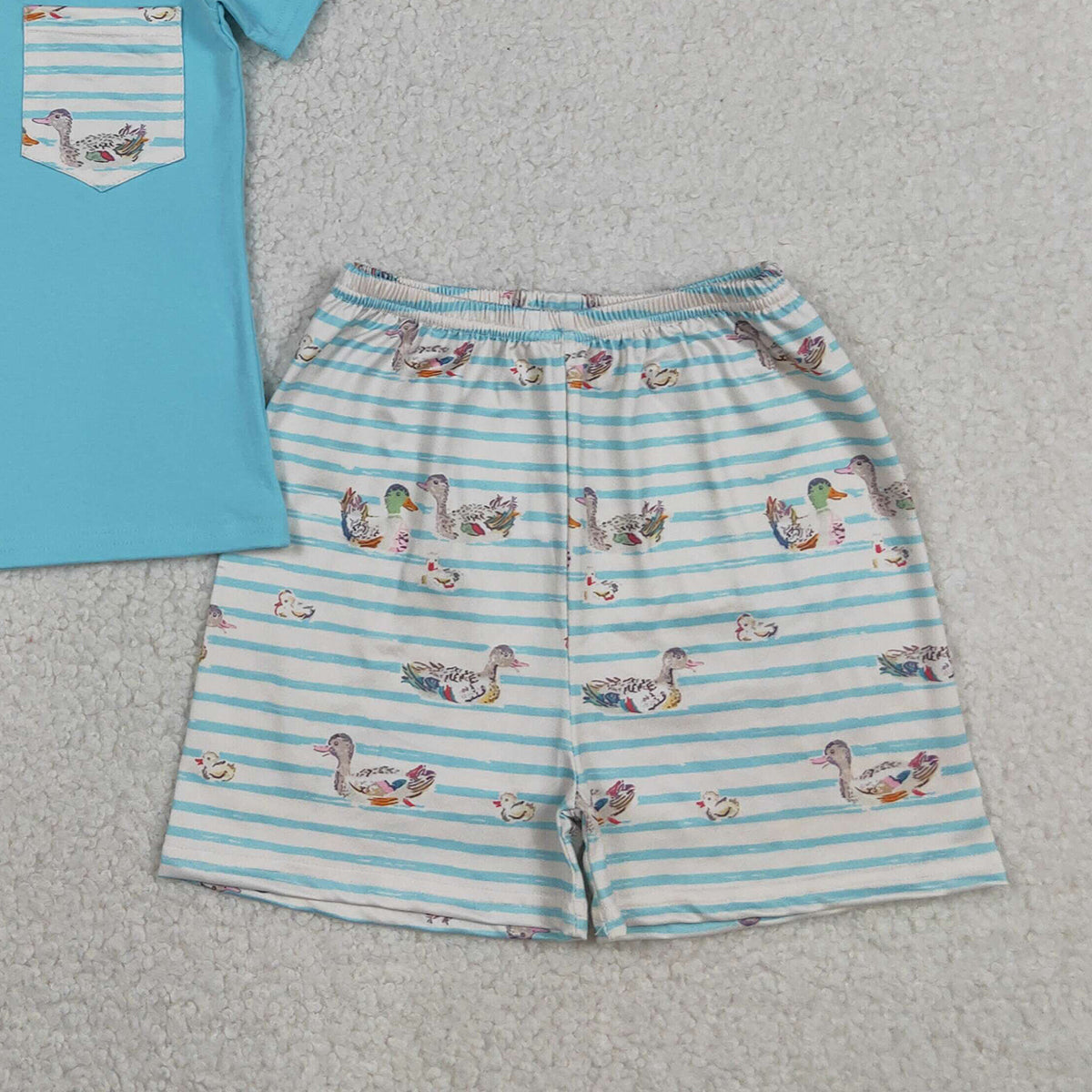 BSSO1802 RTS NO MOQ (In stock )Short sleeves pocket top duck stripe shorts boys outfits