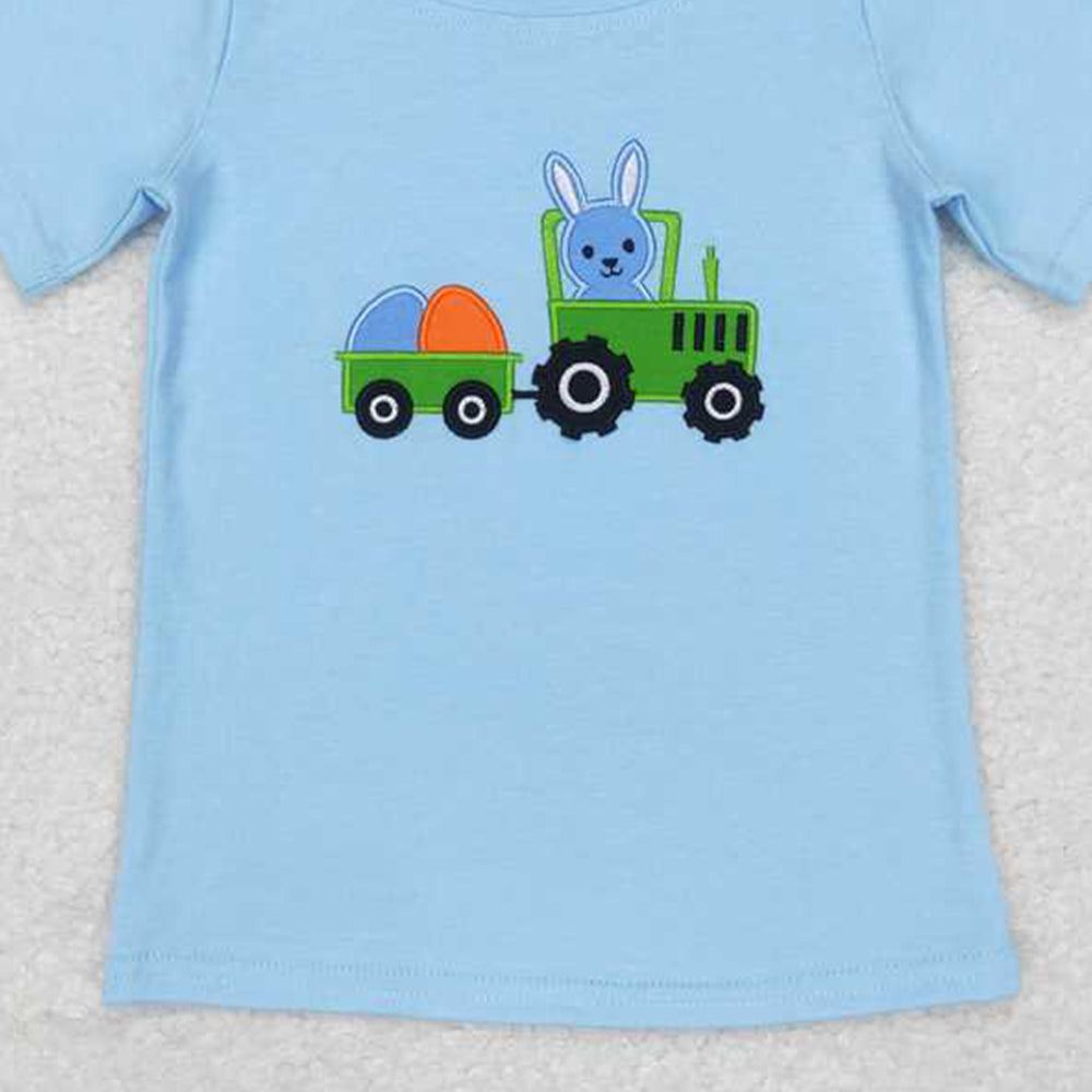 BT0426 RTS NO MOQ Bunny egg tractor blue kids easter shirt