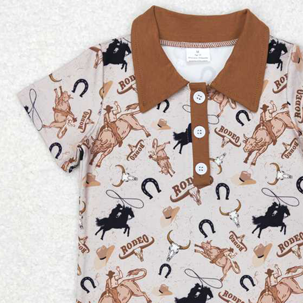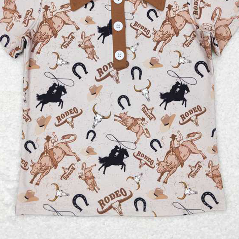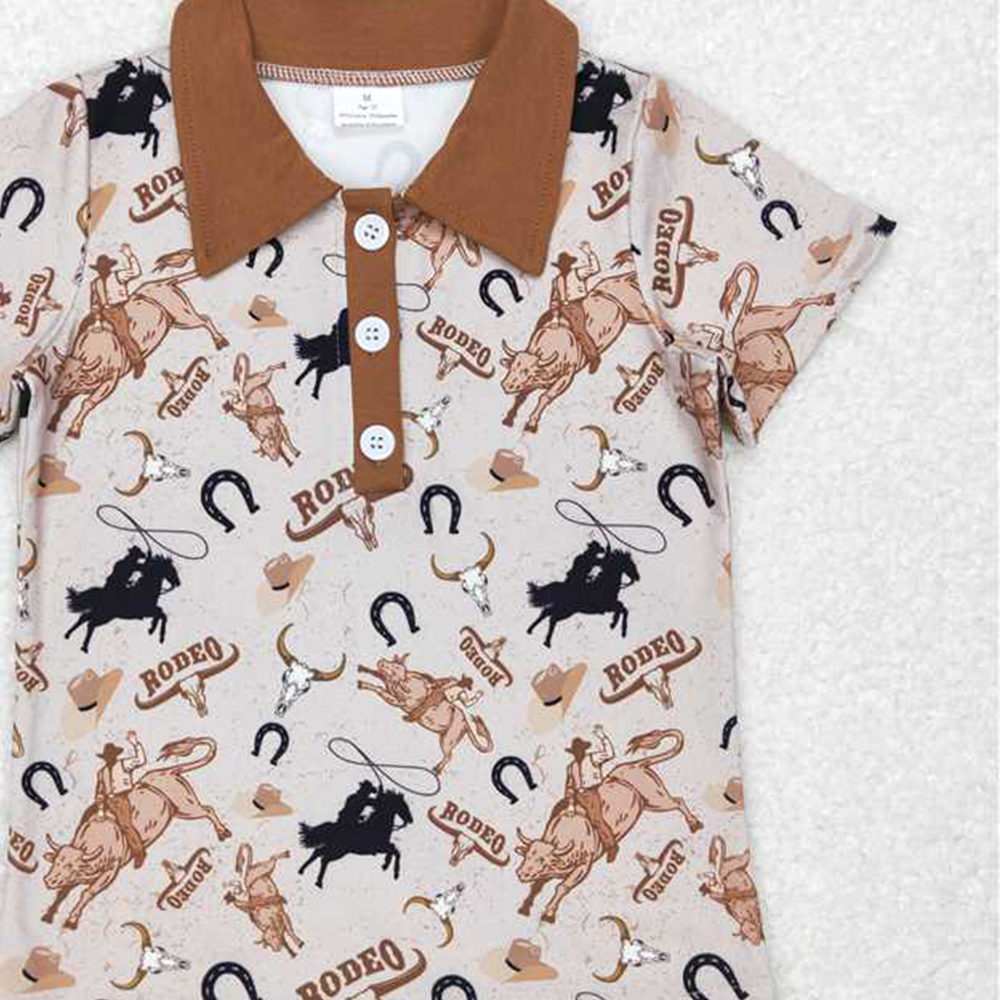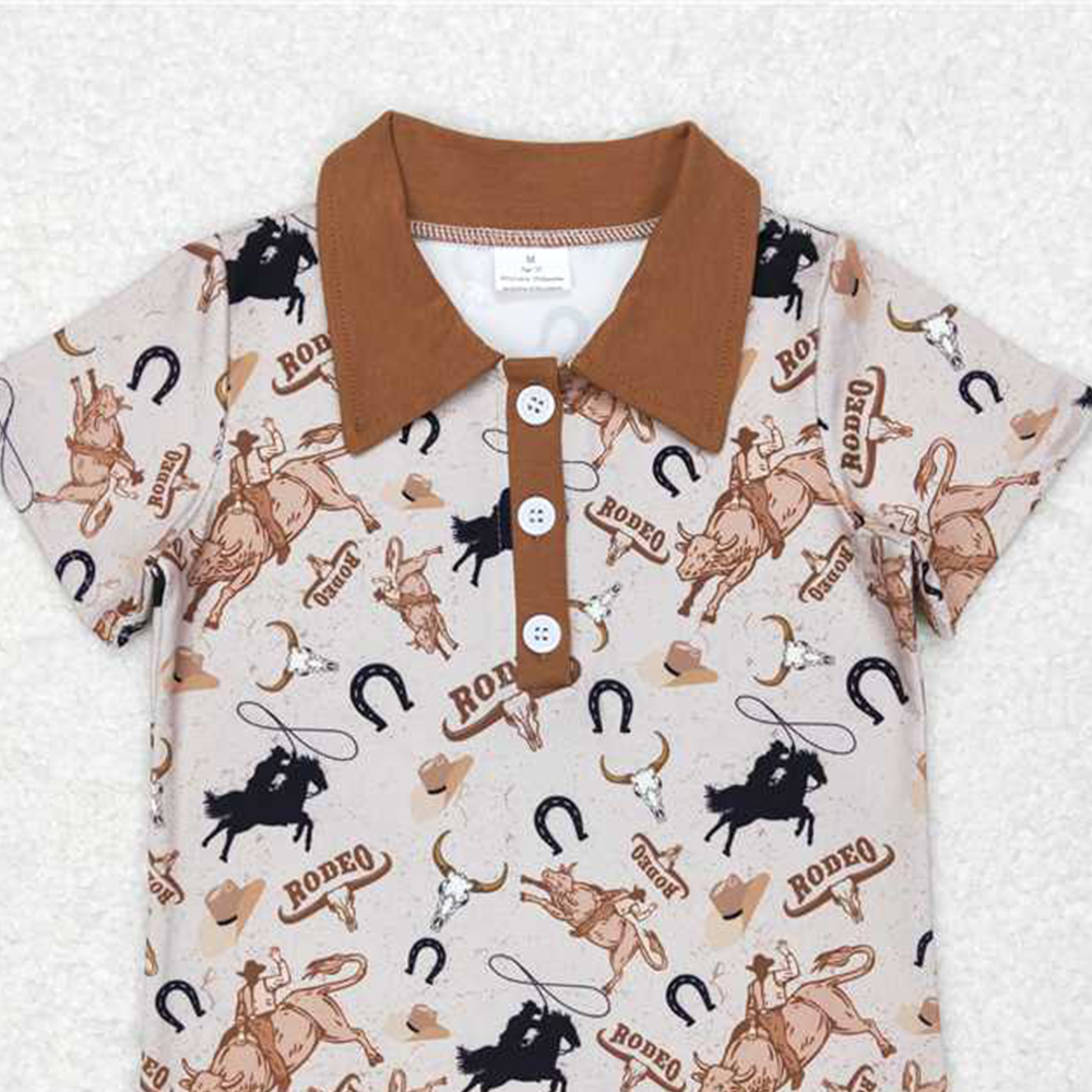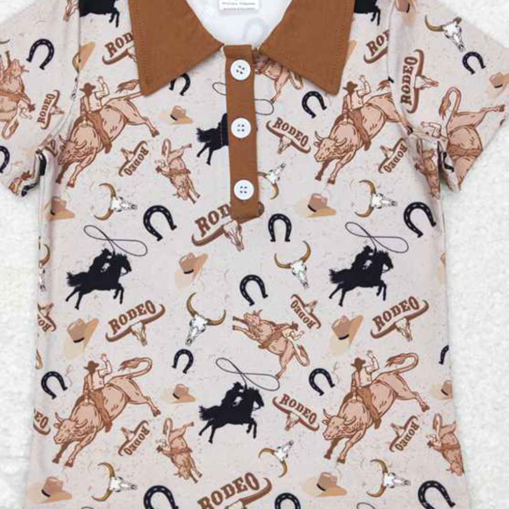 4.07 BT0429 RTS NO MOQ Baby Boys Summer Tops Bull skull rodeo short sleeves western boy polo shirt