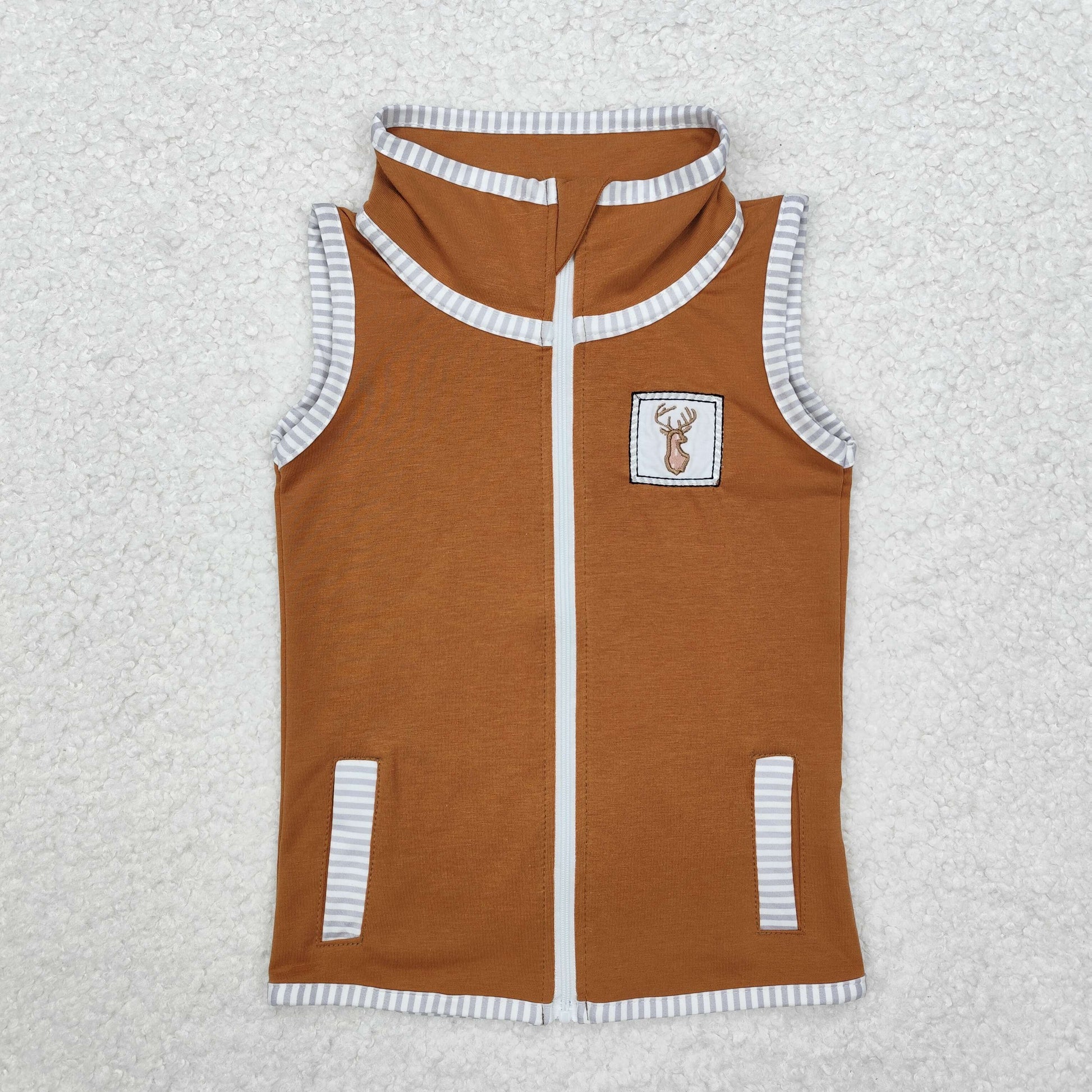 BT0855 Baby Girls Boys Deers Hunting Zip Pocket Vest Tops