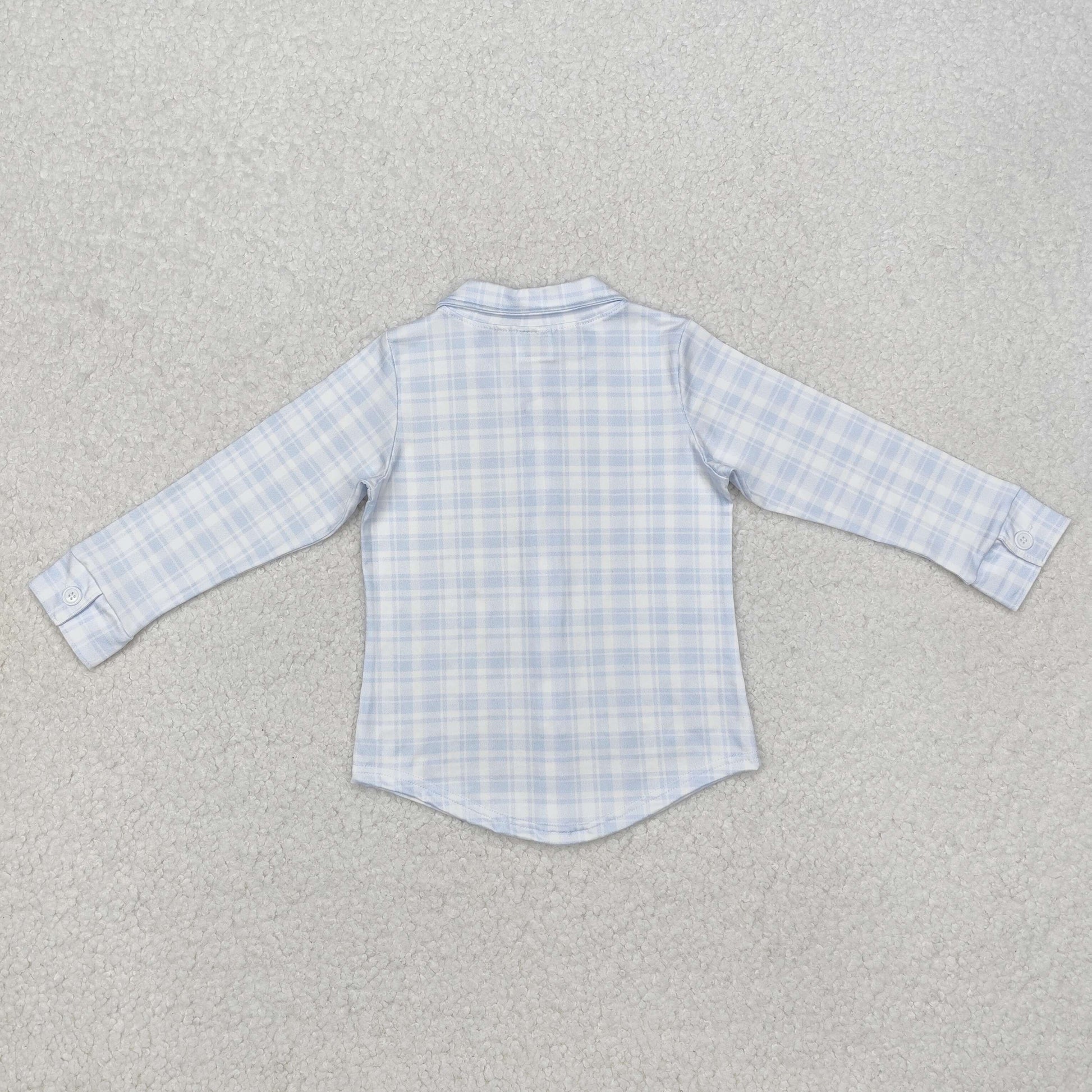 BT1075 Light blue plaid long sleeves kids boys button down shirt