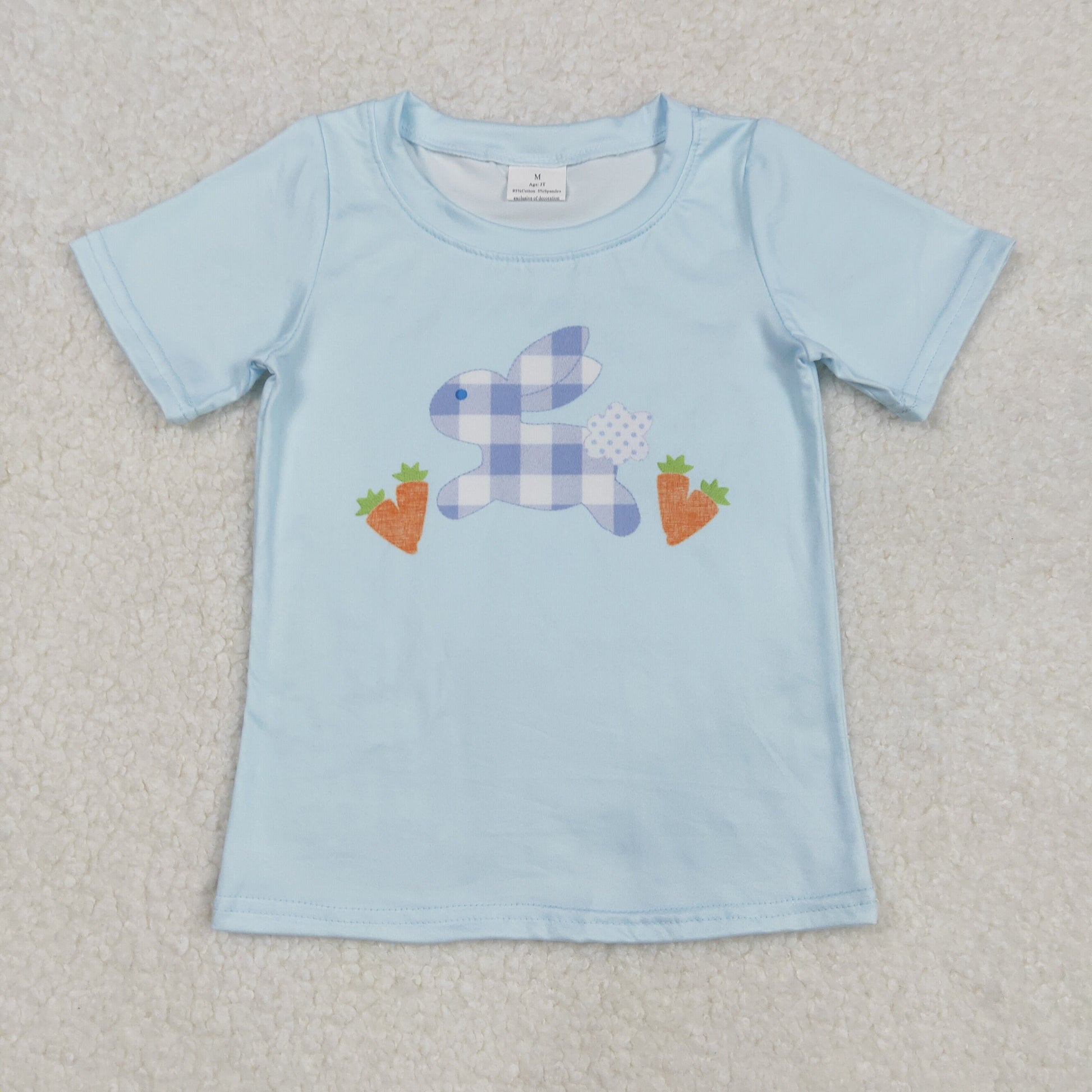 BT1166Light Blue Bunny Carrot Short Sleeve Easter Shirt for Boys Spring Holiday Fashion Kids' Clothing