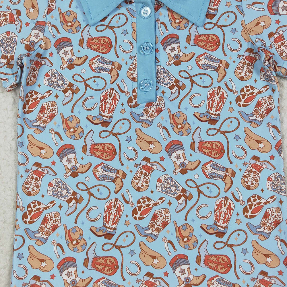 8.18 BT1256 RTS NO MOQ Baby Boys Summer Tops Baby Boys Blue Short Sleeves Hats Boots Button Pullovers Shirts Top