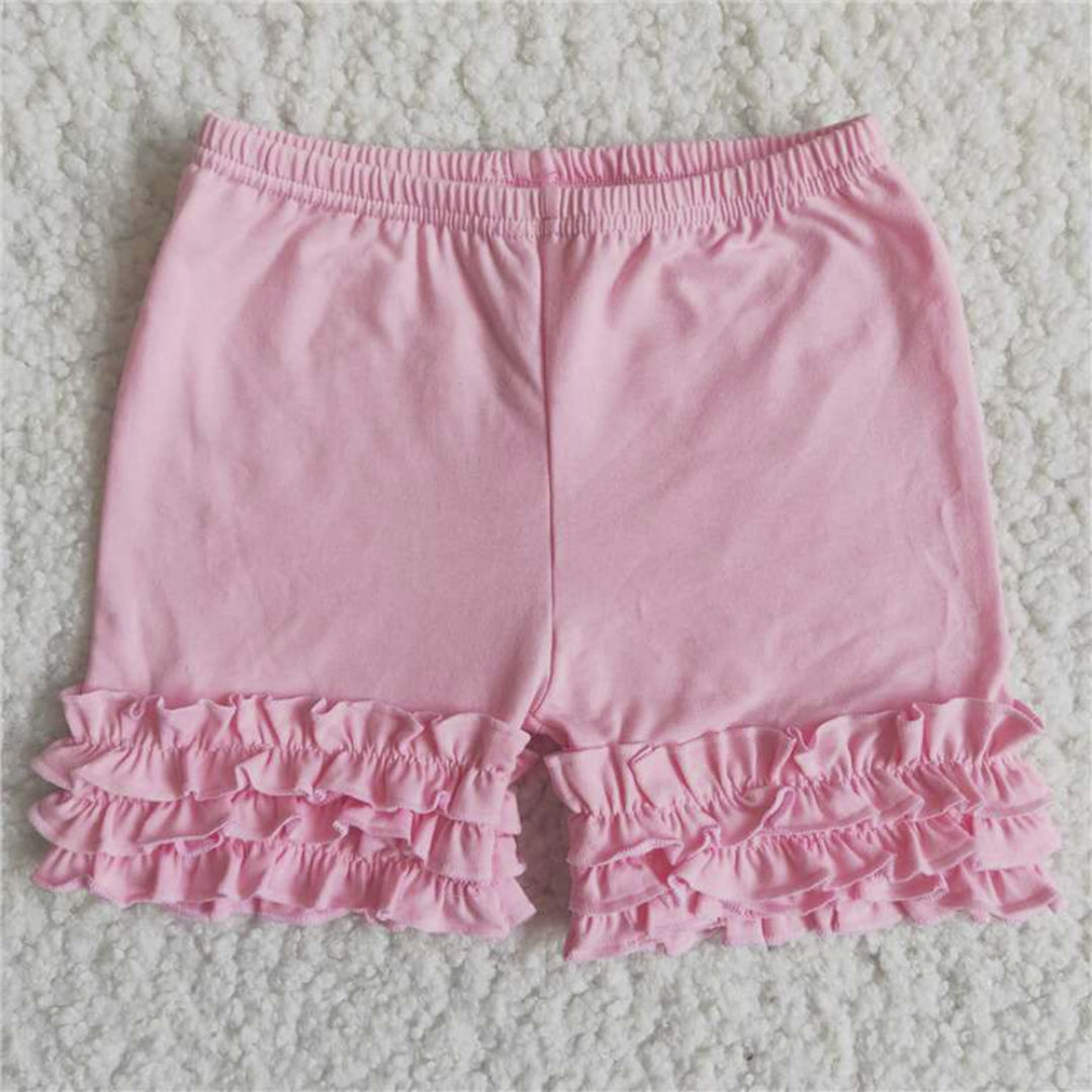 C13-15 RTS NO MOQ Pink Icing Ruffle Shorts for Girls Soft Cotton Stretchy Comfortable Fit Kids' Clothing Pink Ruffled Shorts for Girls