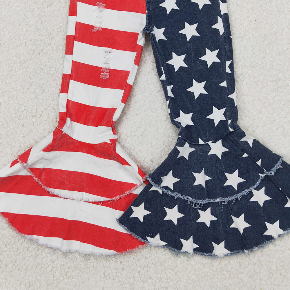 C3-14 RTS NO MOQ Baby Girls Pants Stripe and stars distressed girls denim pants