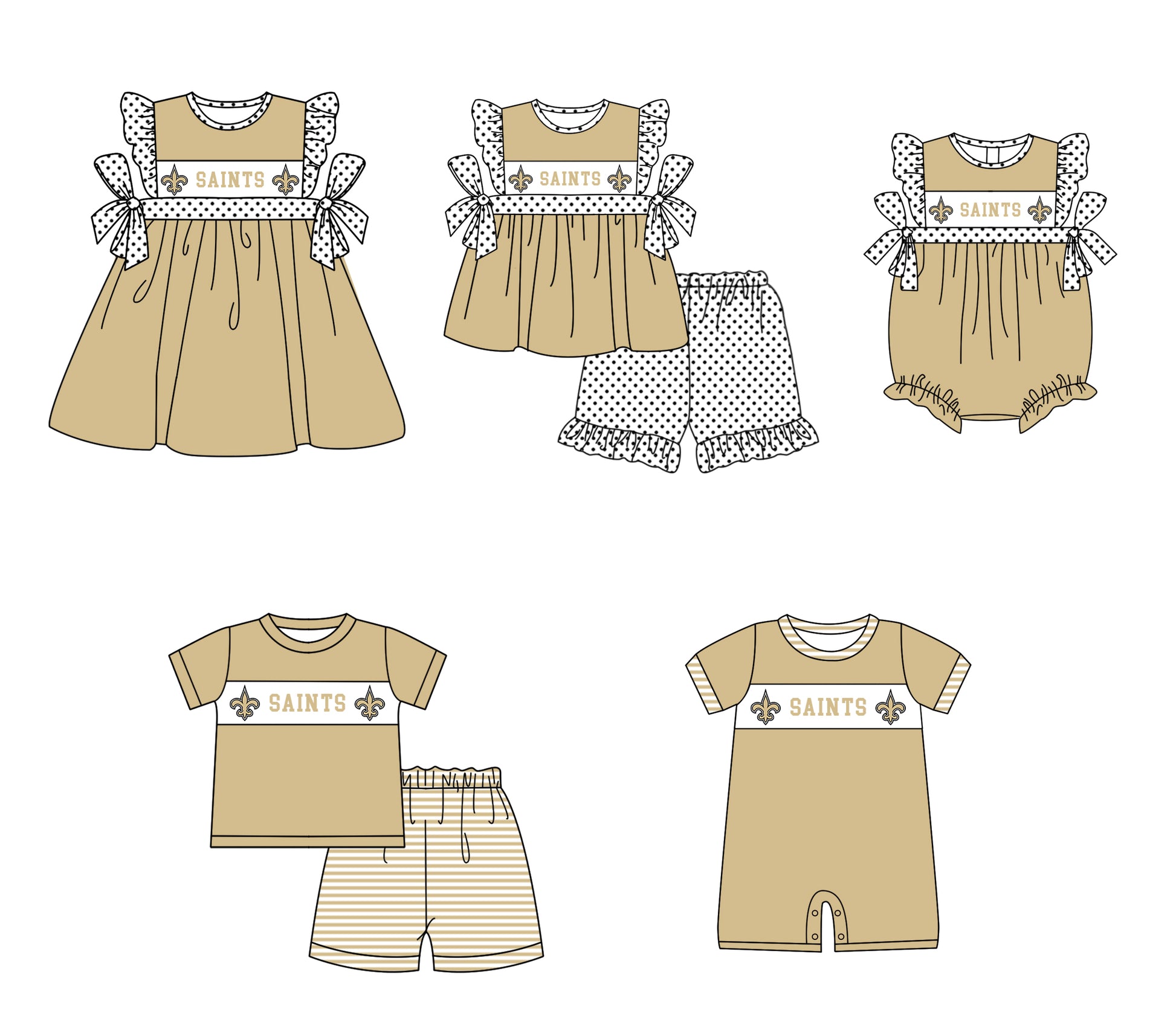 CUSTOM MOQ 5 Sibling Baby Kids Khaki Top Shorts Clothes Set Knee Length Dress Rompers