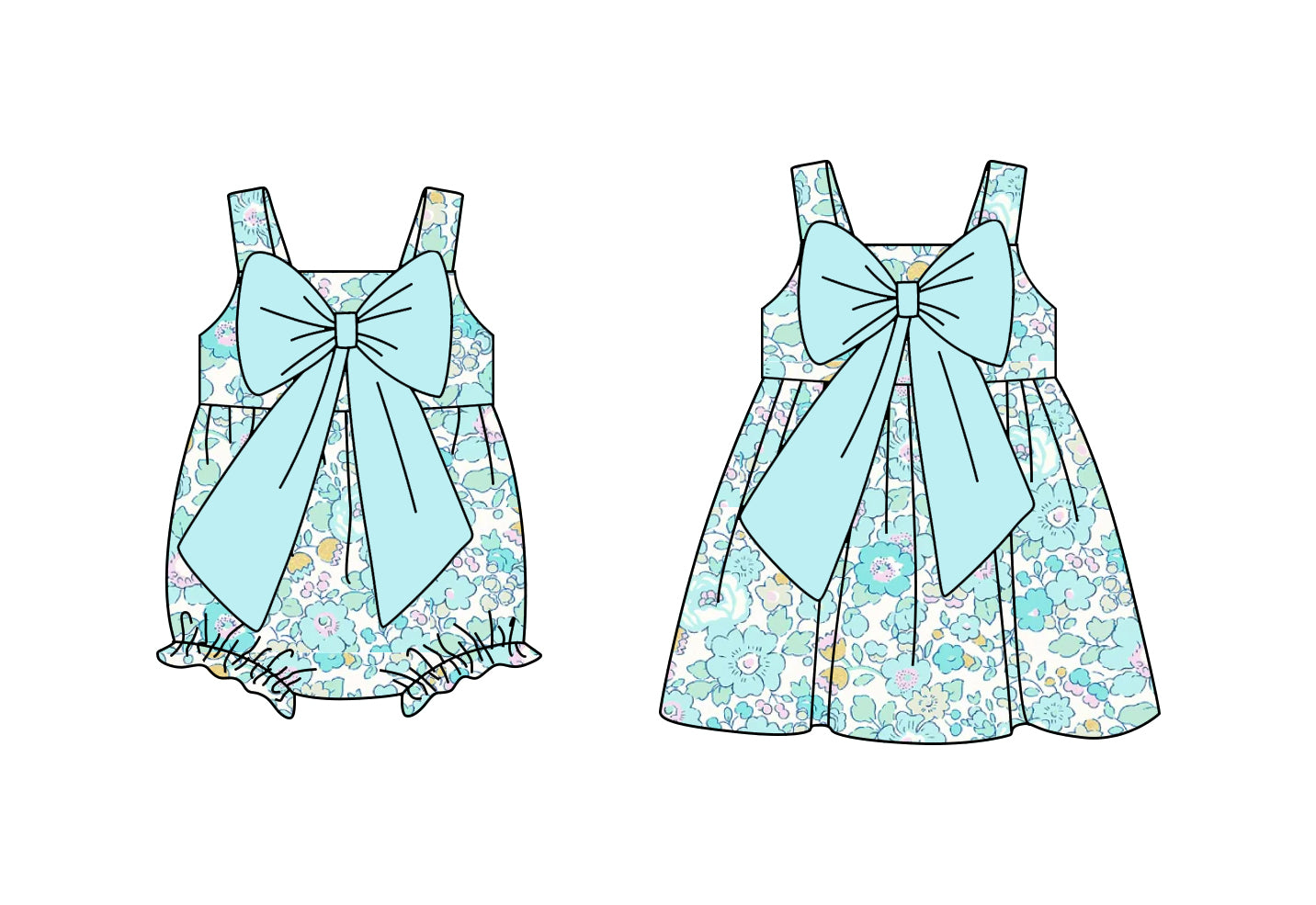 Baby Girl Blue Flower Big Bow Knee-Length Dress Romper