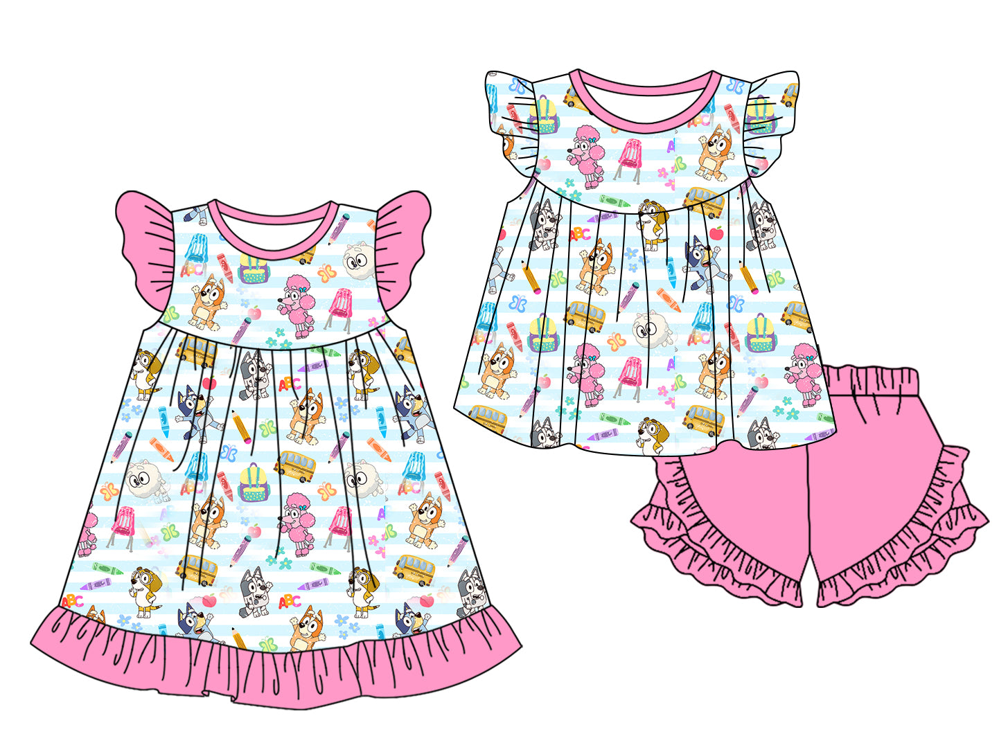 Stripe pencil dog apple tunic shorts girls back to school clothes