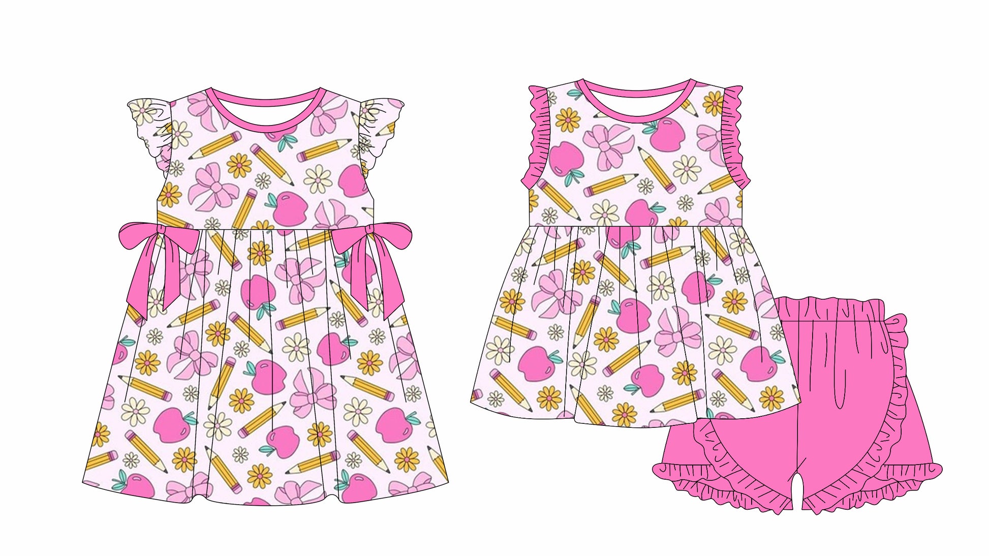 Pink apple pencil bow floral girls back to school outfits