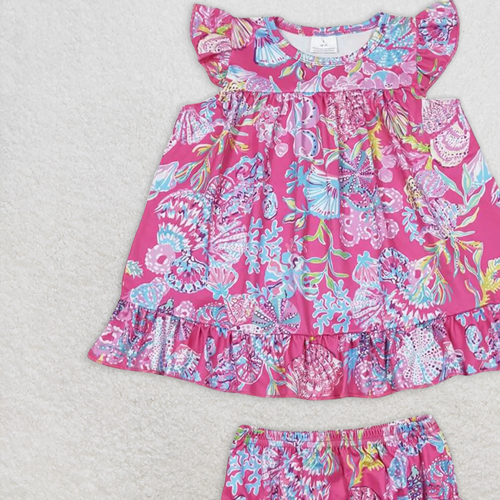 GBO0344 RTS NO MOQ Baby Girls Summer Outfits Baby Girls Pink Shells Tunic Top Bummies Clothes Sets