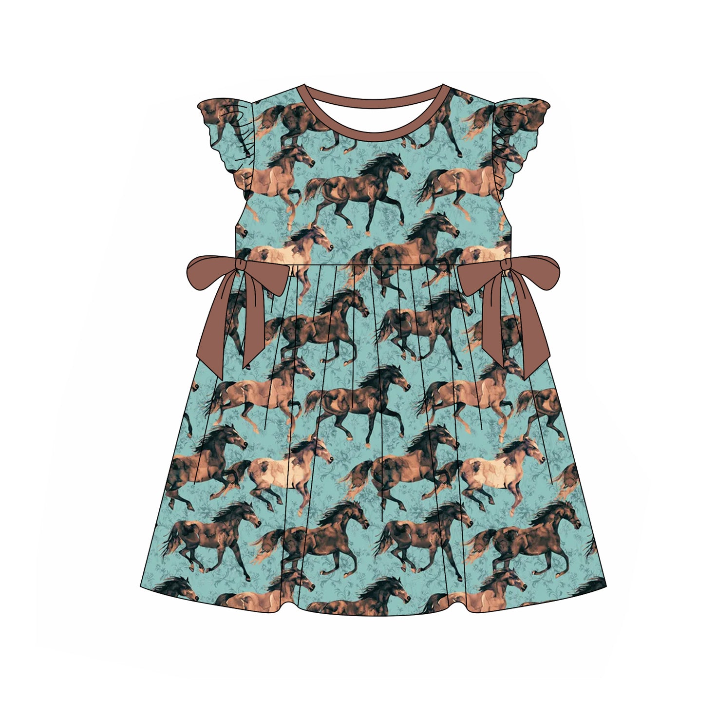 Girls Sleeveless Horse Tunic Brown Ruffle Shorts Outfit Children's Country Clothing Summer Lightweight Set for Girls