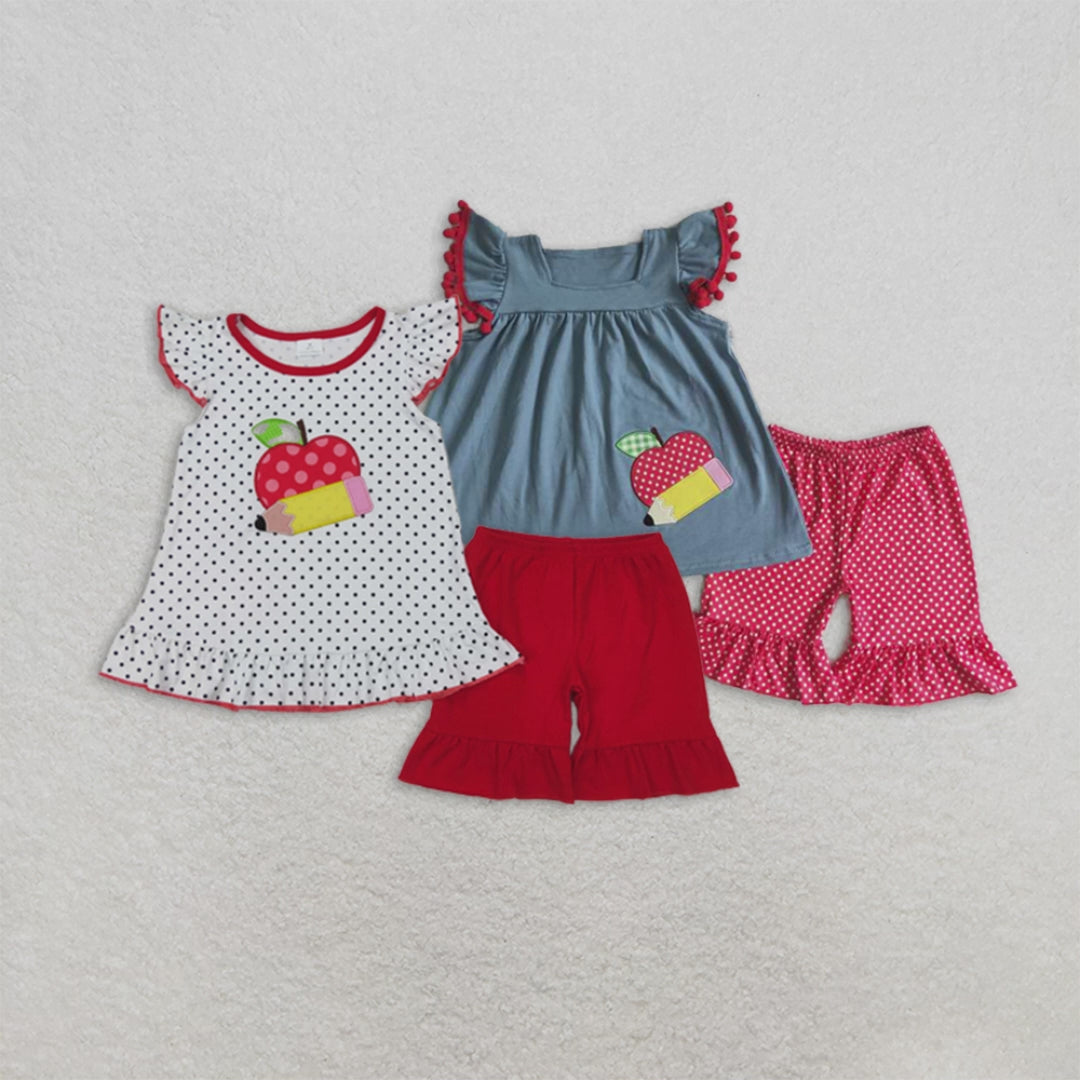 6.04 Girls Back to School Clothing Sets Apple Pencil Embroidery Cute Fashionable Kids Outfits for Elementary School Students