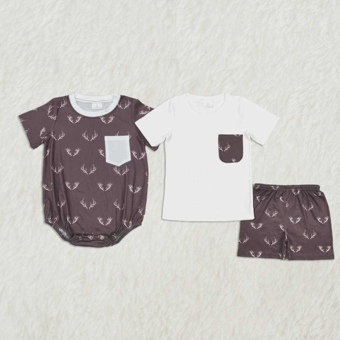 6.05 Boys Short Sleeve Deer Pocket Top Shorts Set Casual Comfortable Clothing for Kids