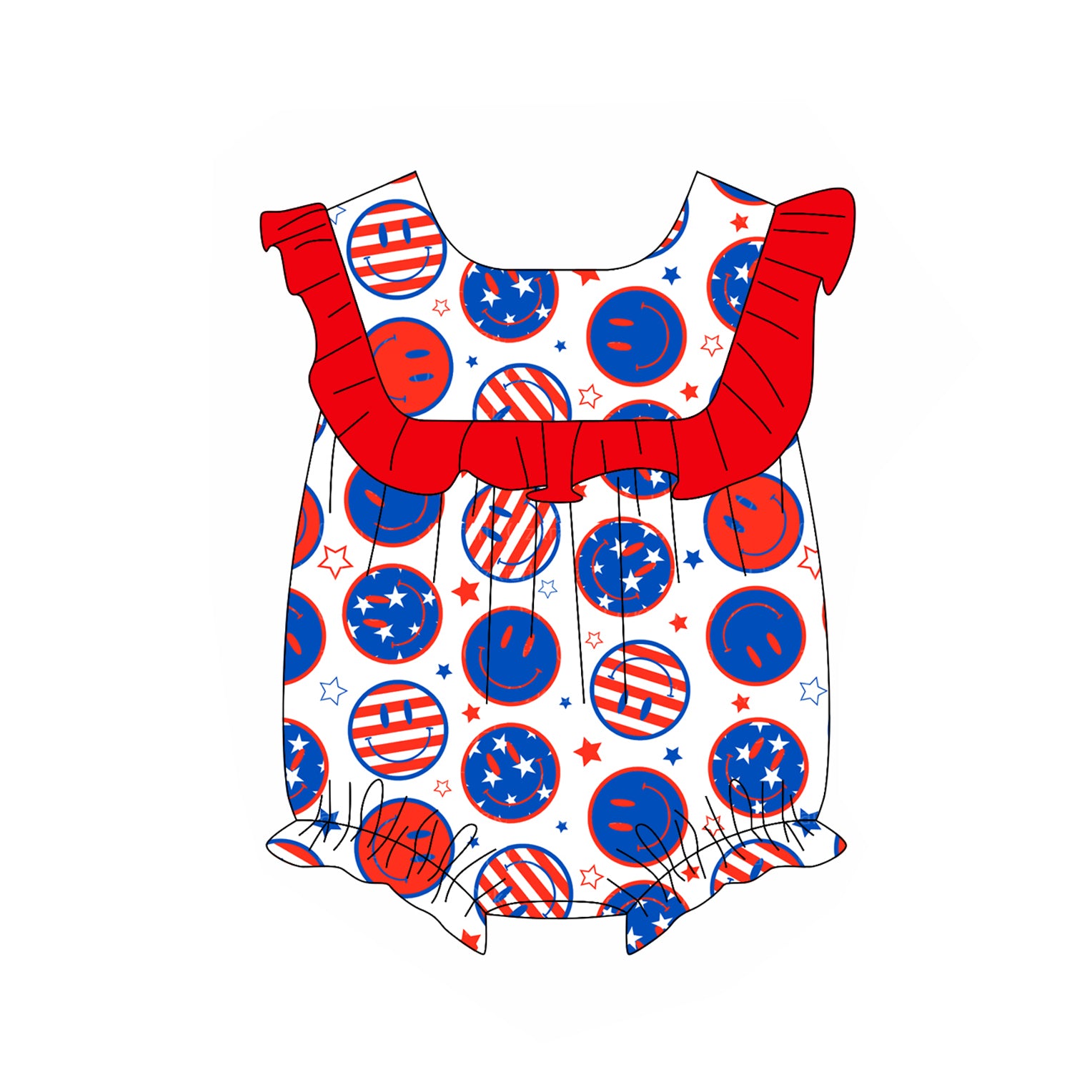 Kids Girls Red Ruffle Stars & Stripes Smiley 4th of July Outfit Set - Patriotic Clothing for Children's Events