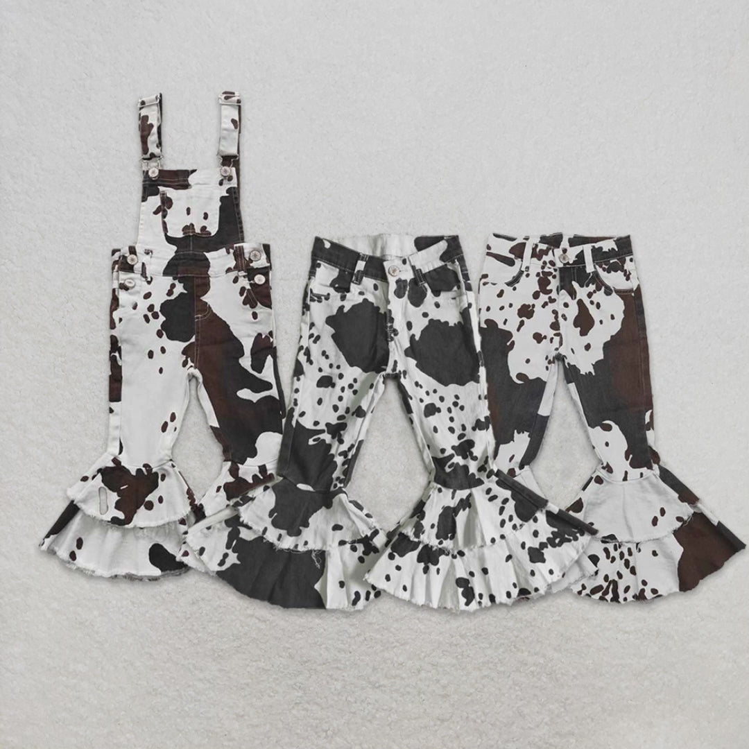 Baby Girls Denim Ruffle Pants Cow Print High Waist Trousers for Kids