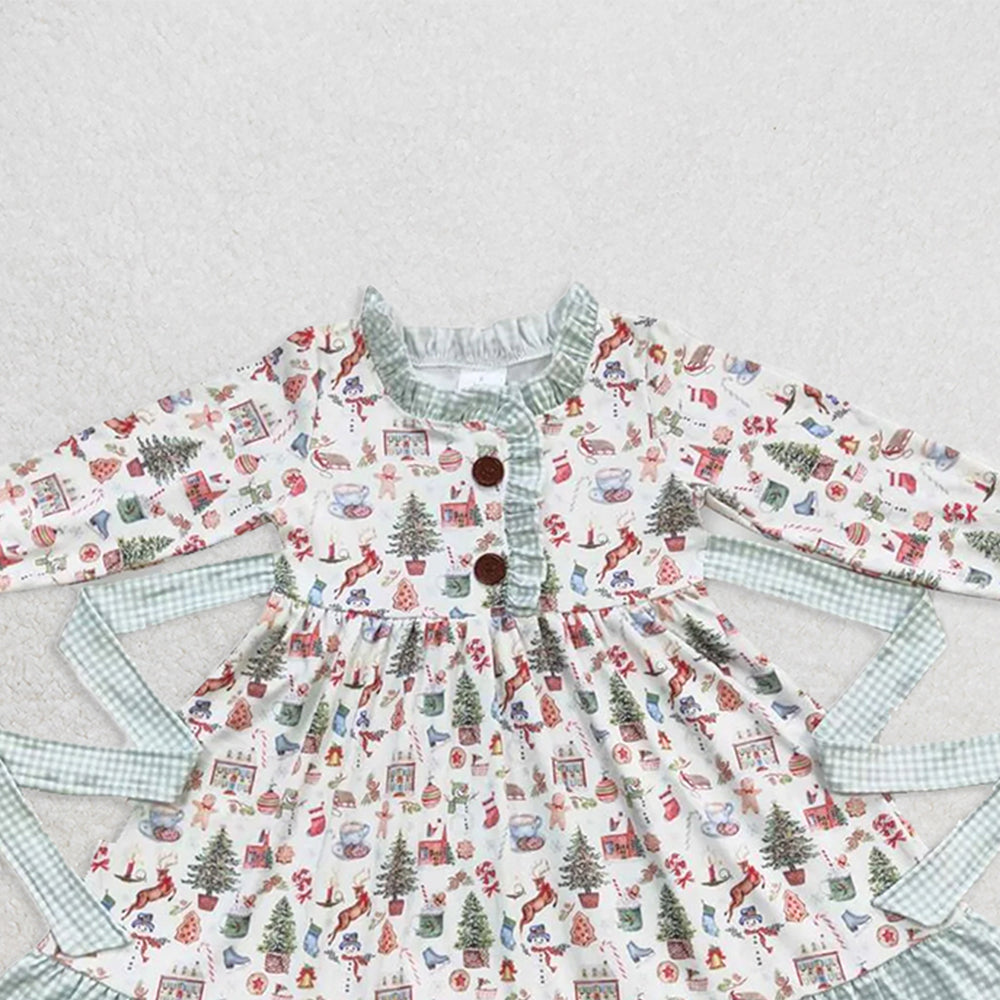 GLD0325 RTS NO MOQ Baby Girls Christmas Present Belt Ruffle Knee Length Dresses