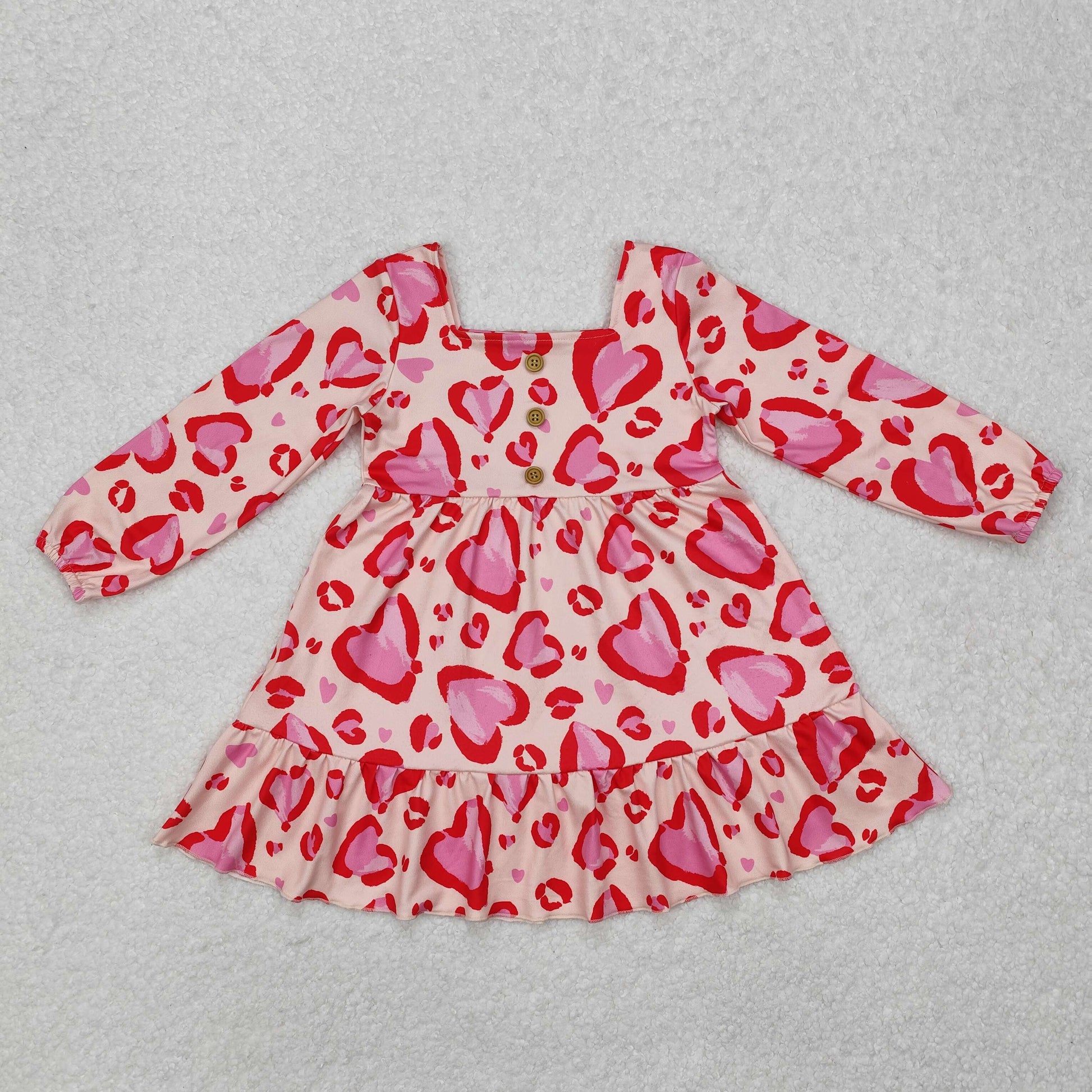GLD0873Long sleeves pink heart ruffle girls valentine's day dress