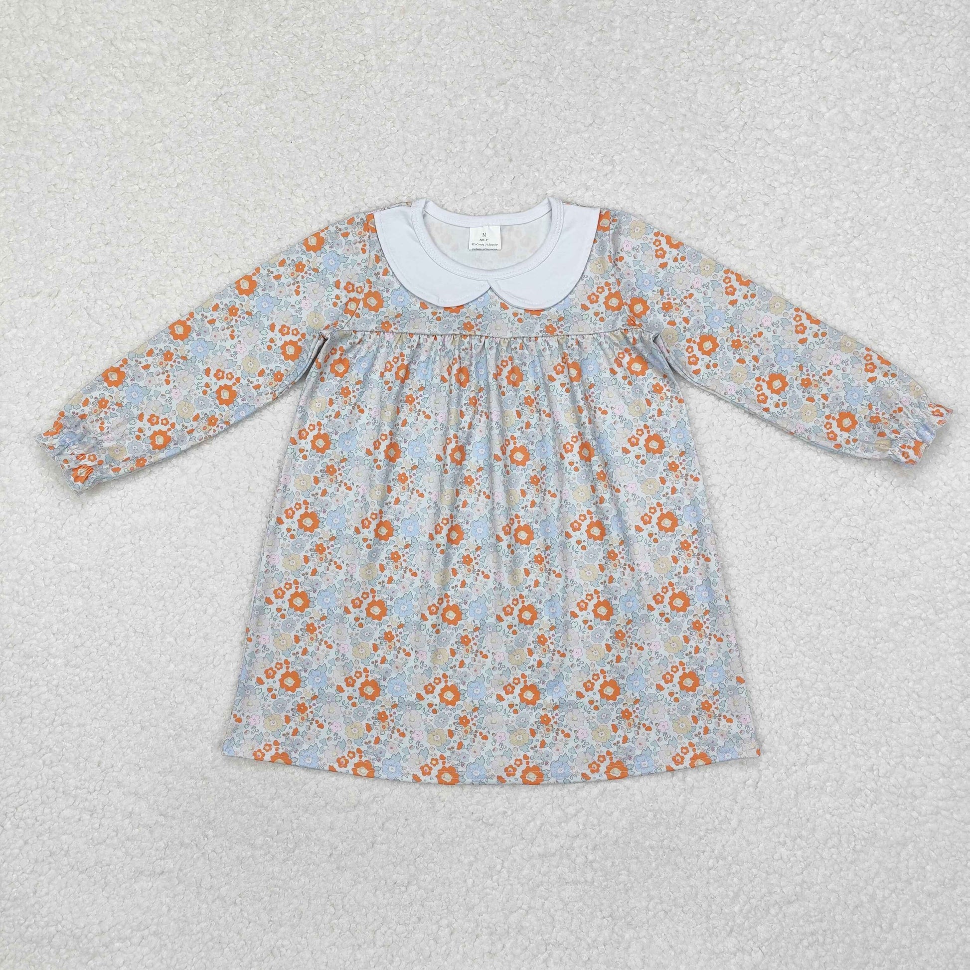 GLD0885 Pink light blue floral long sleeves kids girls dresses