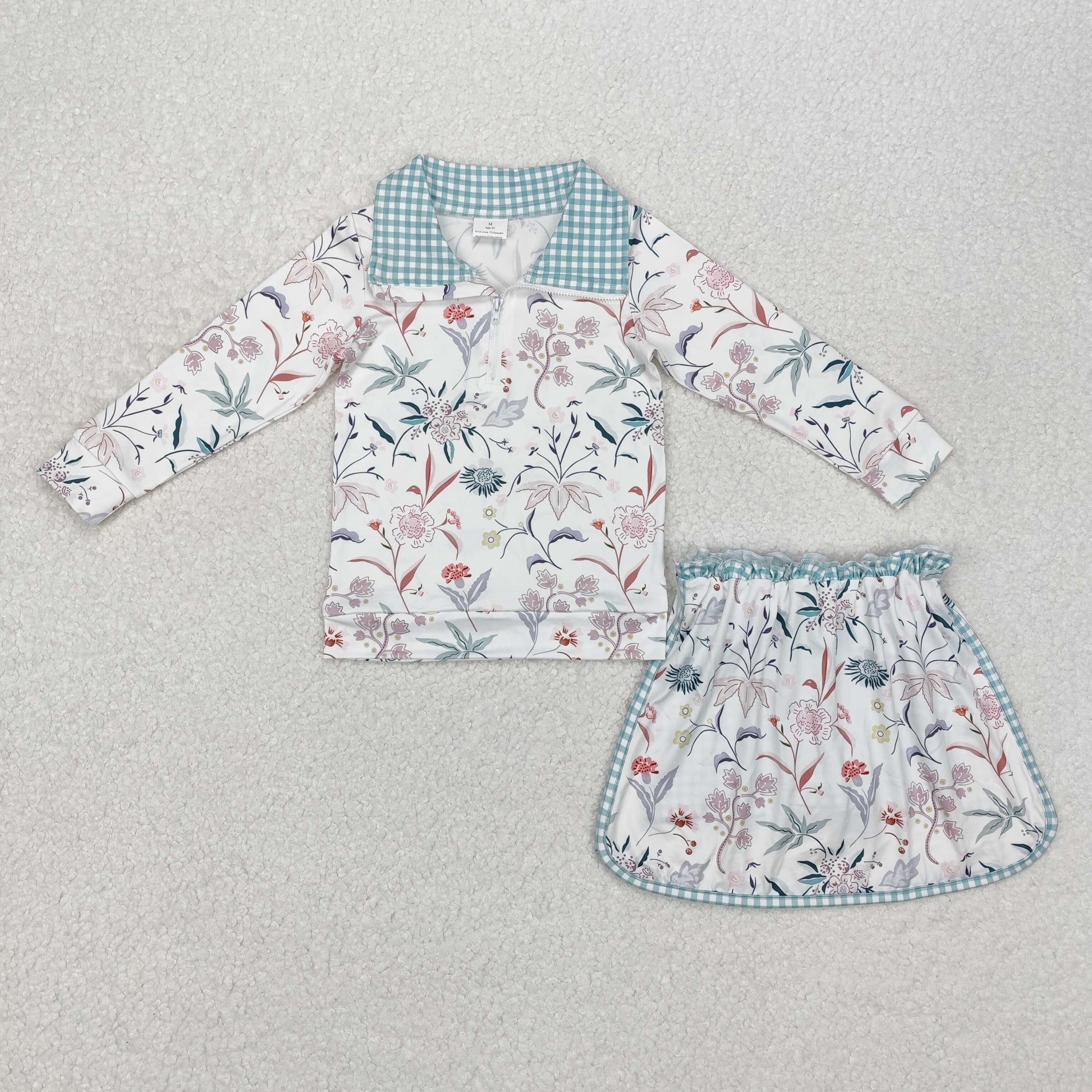 GLD0973 Long sleeves floral pullover skirt kids girls clothing set