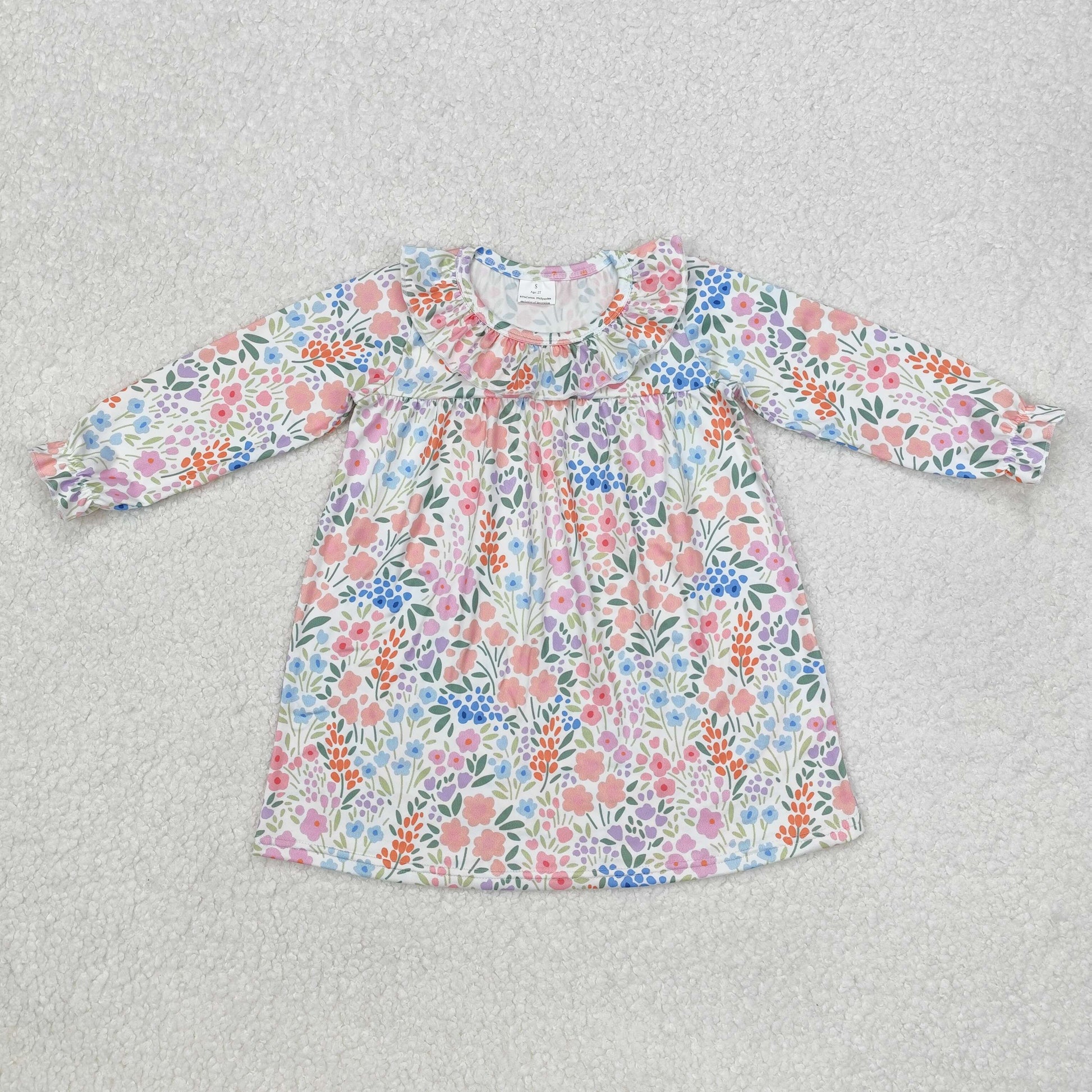 GLD0982Ruffle long sleeves floral baby girls dresses