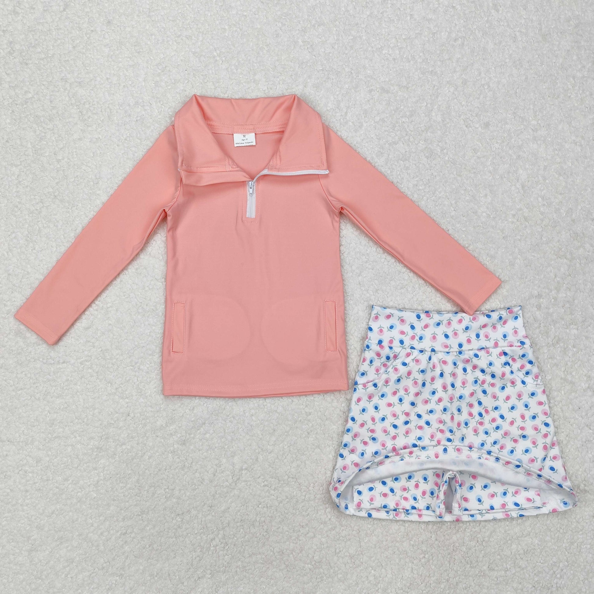 GLD0984Long sleeves pink top floral skirt girls yoga clothes