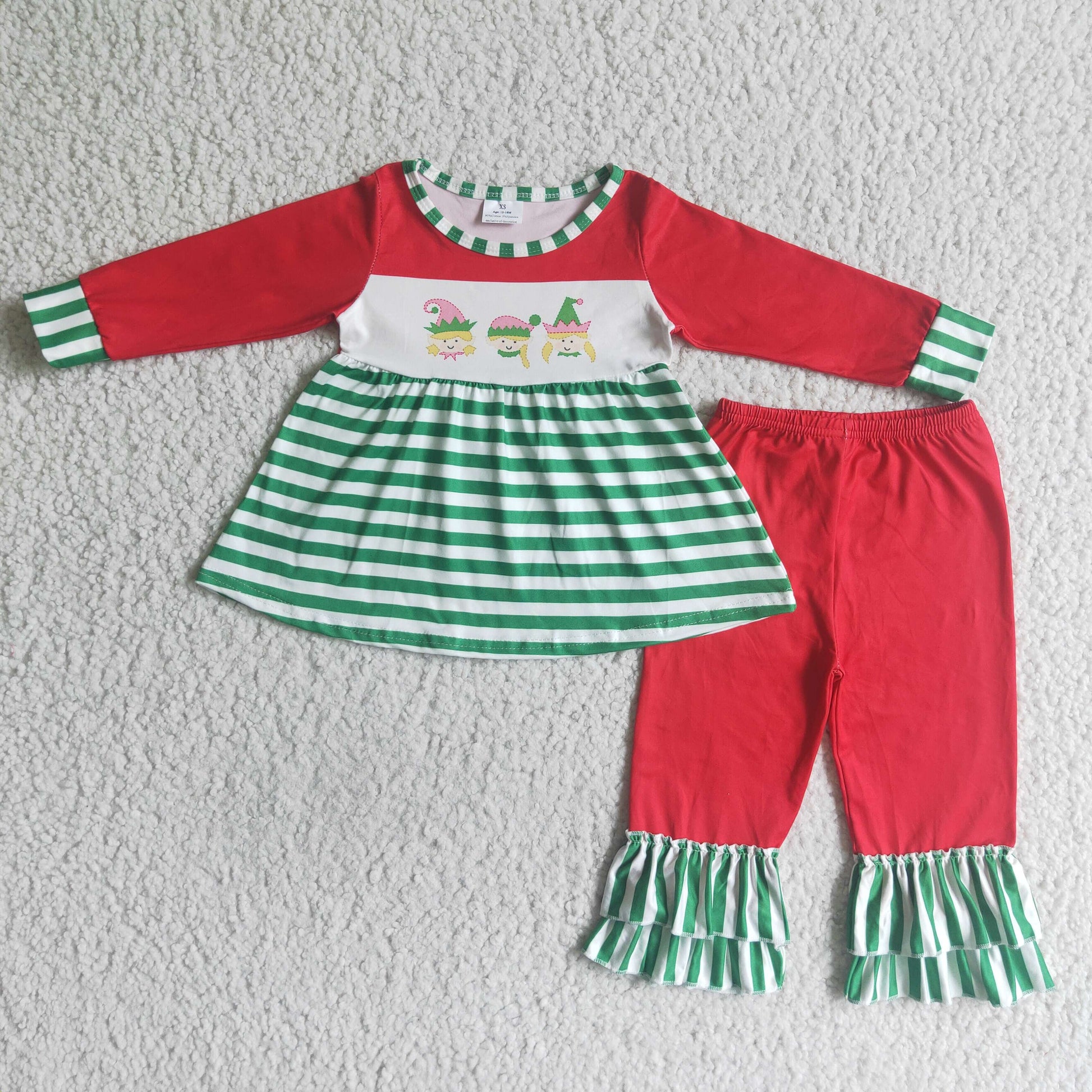 GLP0057 Baby girls Christmas green stripe pants clothes