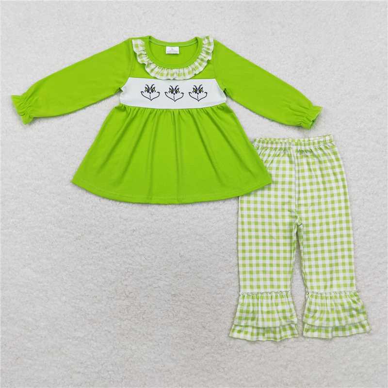 GLP1399 Grinch smiley green plaid lace long-sleeved trousers suit