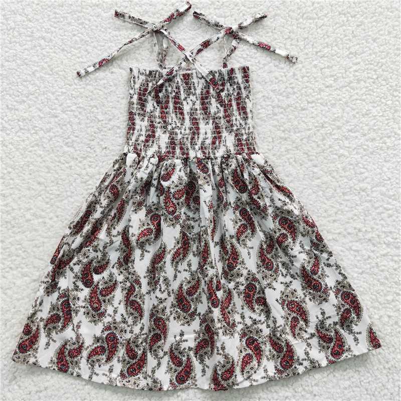 GSD0367 Baby Girls White Flowers Elastic Knee Length Dresses