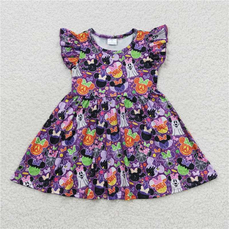 GSD0480 Cartoon Mickey Pumpkin Purple Fly Sleeve Dress