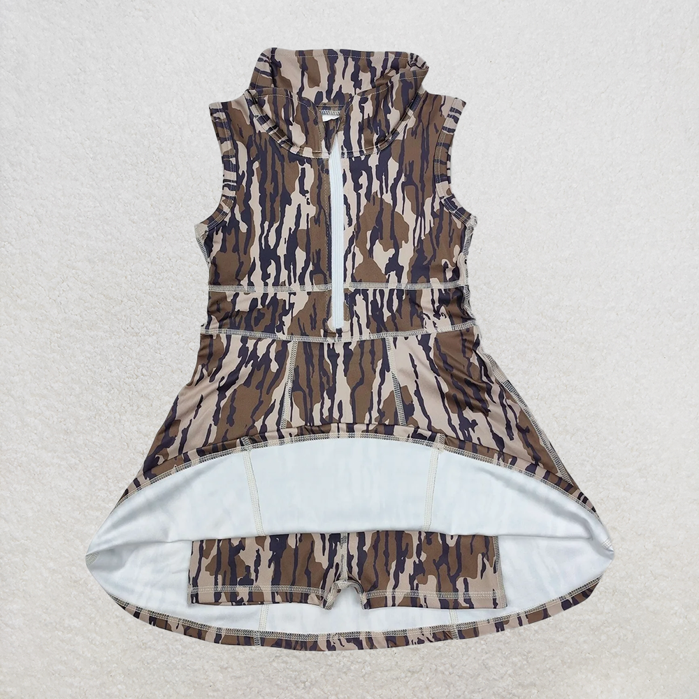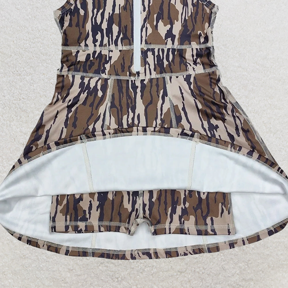 USA Shop (in stock) GSD1383 Bottomland camo sleeveless zipper athletic dress with shorts